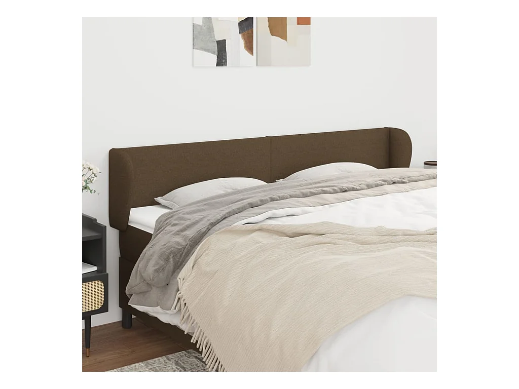 Tête de Lit | Panneau de tête pour lit Moderne avec oreilles Marron foncé 203x23x78/88 cm Tissu