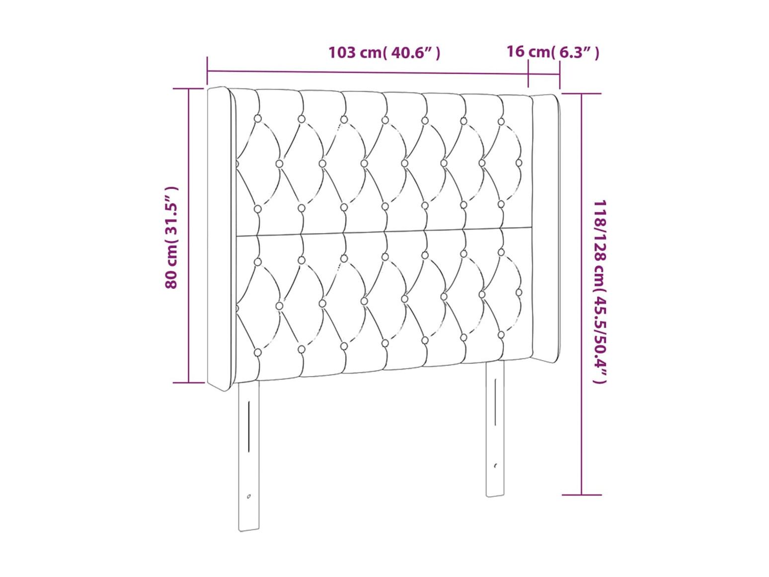 Tête de Lit | Panneau de tête pour lit Moderne avec oreilles Noir 103x23x118/128 cm Velours