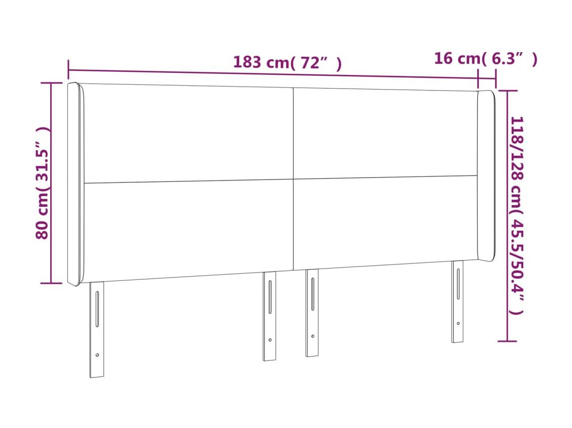 Tête de Lit | Panneau de tête pour lit Moderne avec oreilles Noir 183x16x118/128 cm Velours
