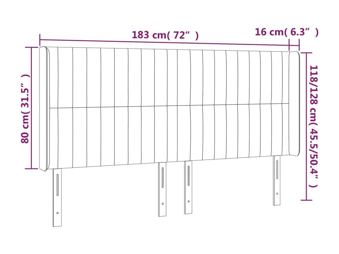 Tête de Lit | Panneau de tête pour lit Moderne avec oreilles Noir 183x16x118/128 cm Velours