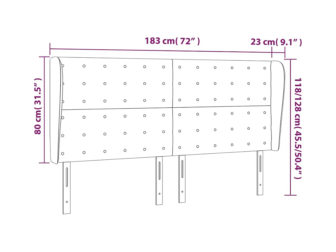 Tête de Lit | Panneau de tête pour lit Moderne avec oreilles Noir 183x23x118/128 cm Similicuir