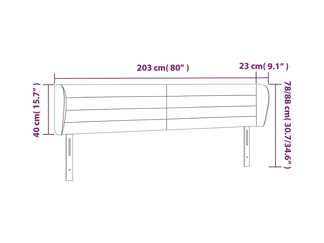 Tête de Lit | Panneau de tête pour lit Moderne avec oreilles Noir 203x23x78/88 cm Tissu