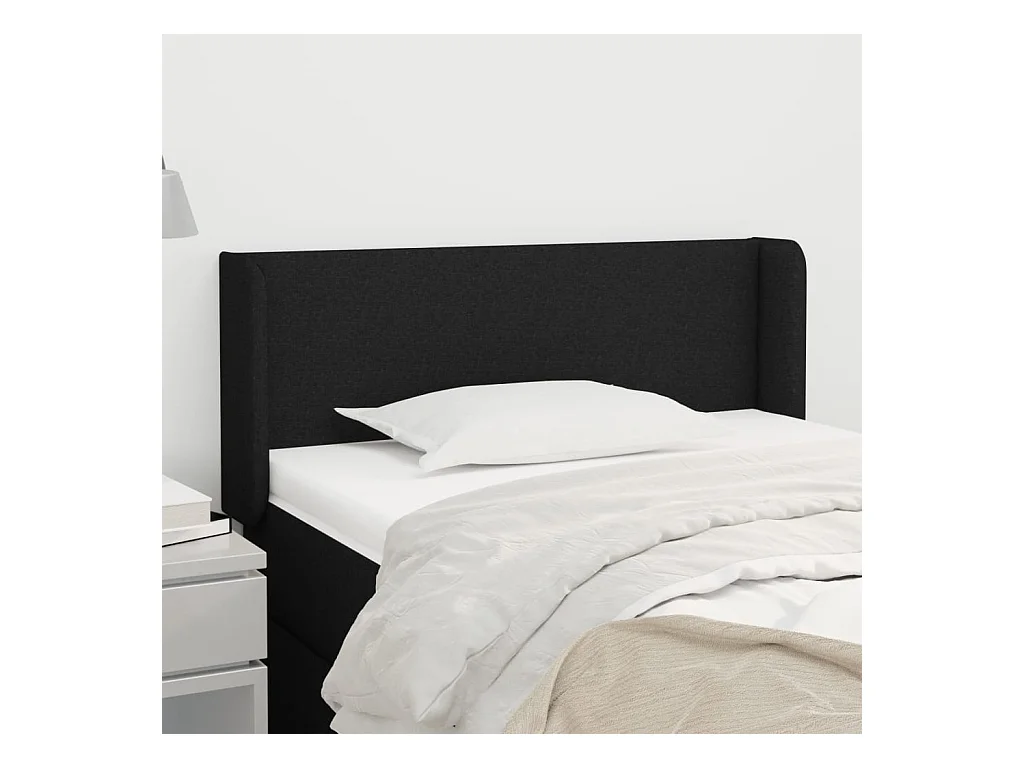 Tête de Lit | Panneau de tête pour lit Moderne avec oreilles Noir 93x16x78/88 cm Tissu