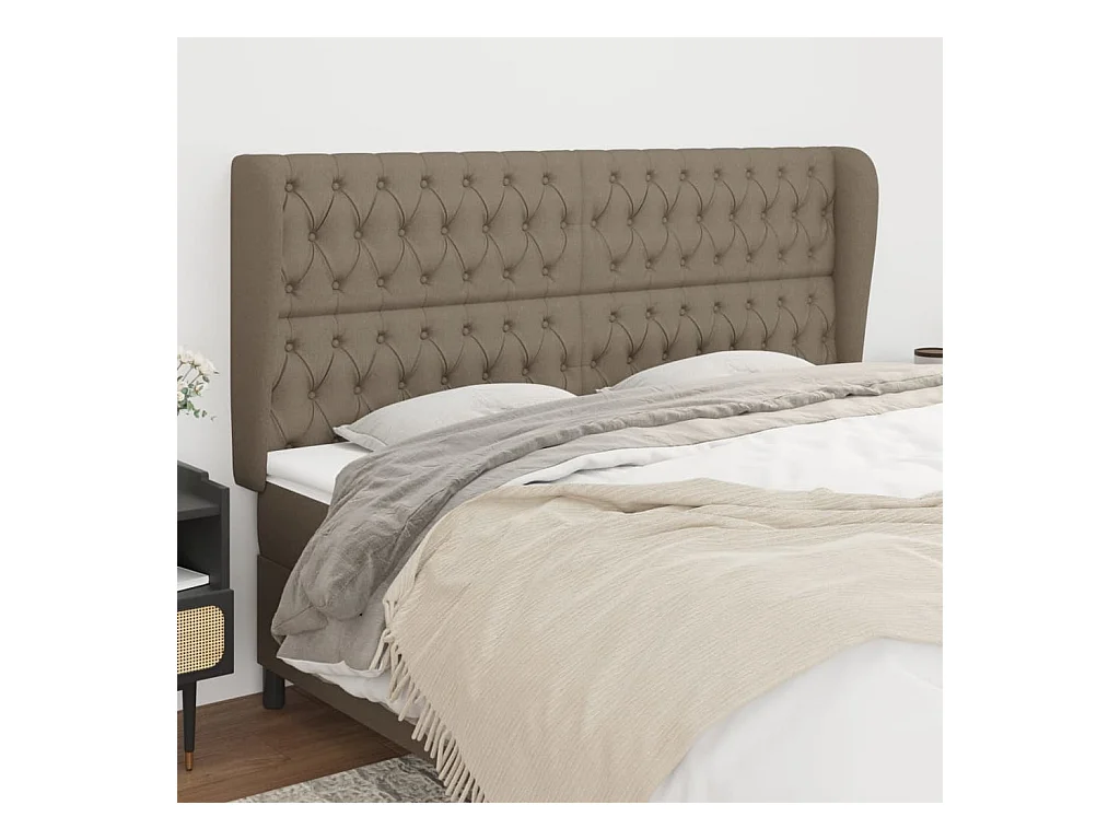 Tête de Lit | Panneau de tête pour lit Moderne avec oreilles Taupe 203x23x118/128 cm Tissu
