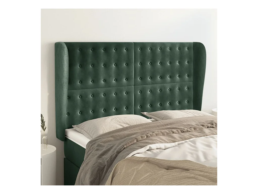 Tête de Lit | Panneau de tête pour lit Moderne avec oreilles Vert foncé 147x23x118/128 cm Velours