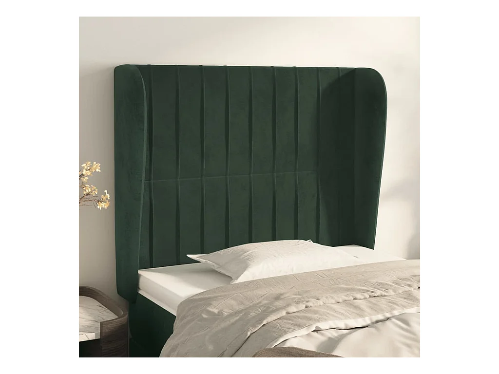 Tête de Lit | Panneau de tête pour lit Moderne avec oreilles Vert foncé 93x23x118/128 cm Velours