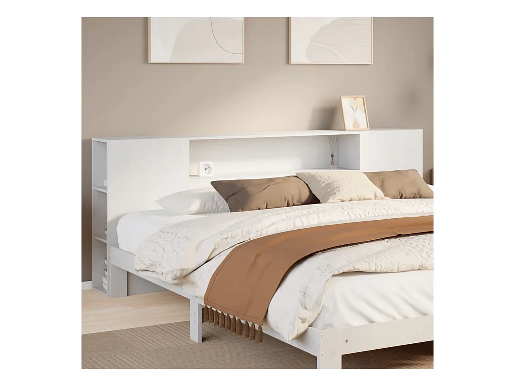 Tête de Lit | Panneau de tête pour lit Moderne avec rangement blanc 200 cm bois massif de pin