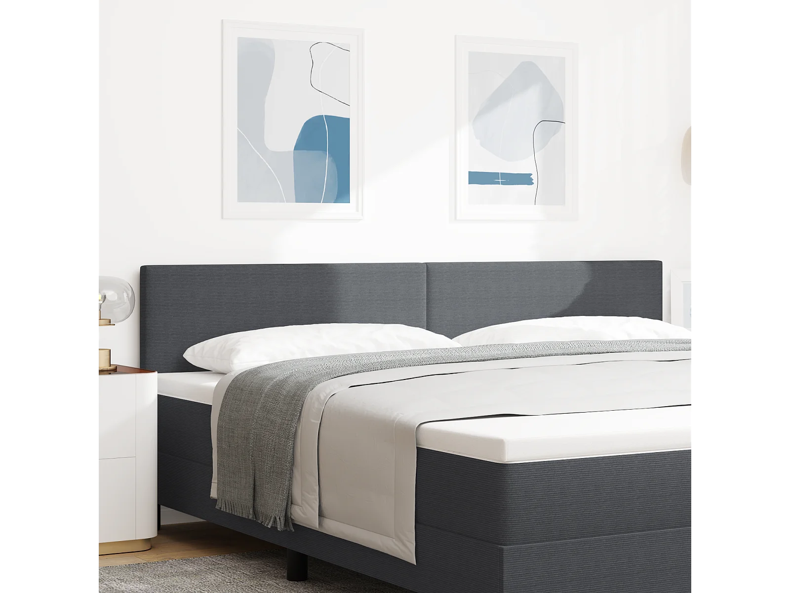 Tête de Lit | Panneau de tête pour lit Moderne avec Tête de Lit | Panneau de tête pour lit Moderne Gris foncé 200 cm Tissu côtelé