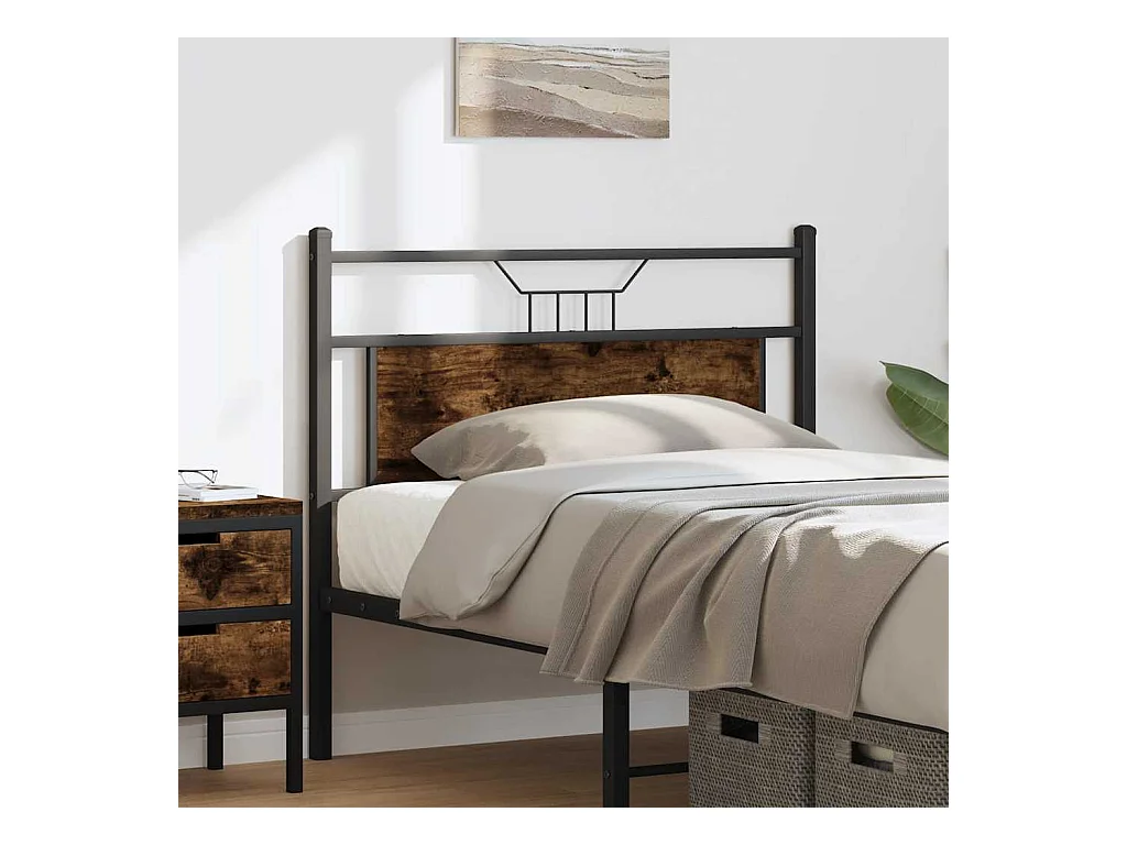 Tête de Lit | Panneau de tête pour lit Moderne chêne fumé 107 cm bois d'ingénierie et acier