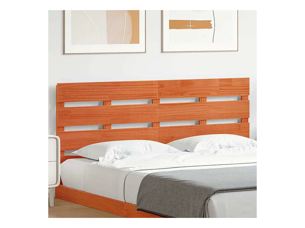 Tête de Lit | Panneau de tête pour lit Moderne en bois massif de pin marron ciré, 140 cm