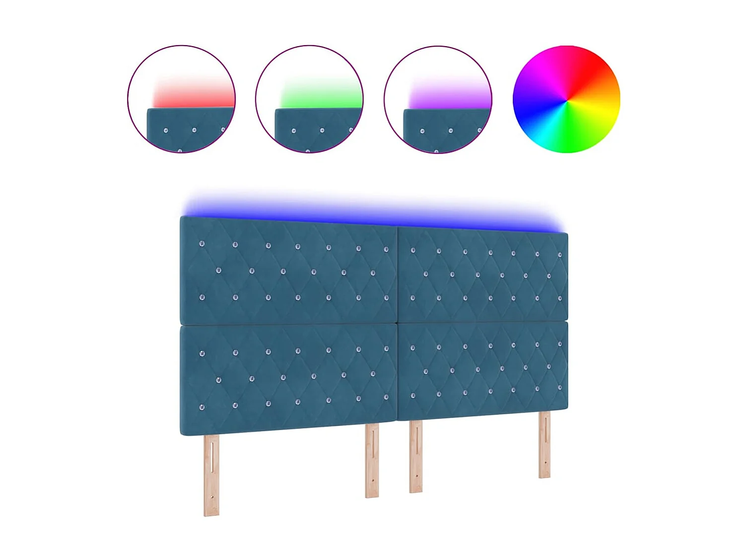 Tête de Lit | Panneau de tête pour lit Moderne LED Argyle Manuel Bleu foncé 90 cm Velours
