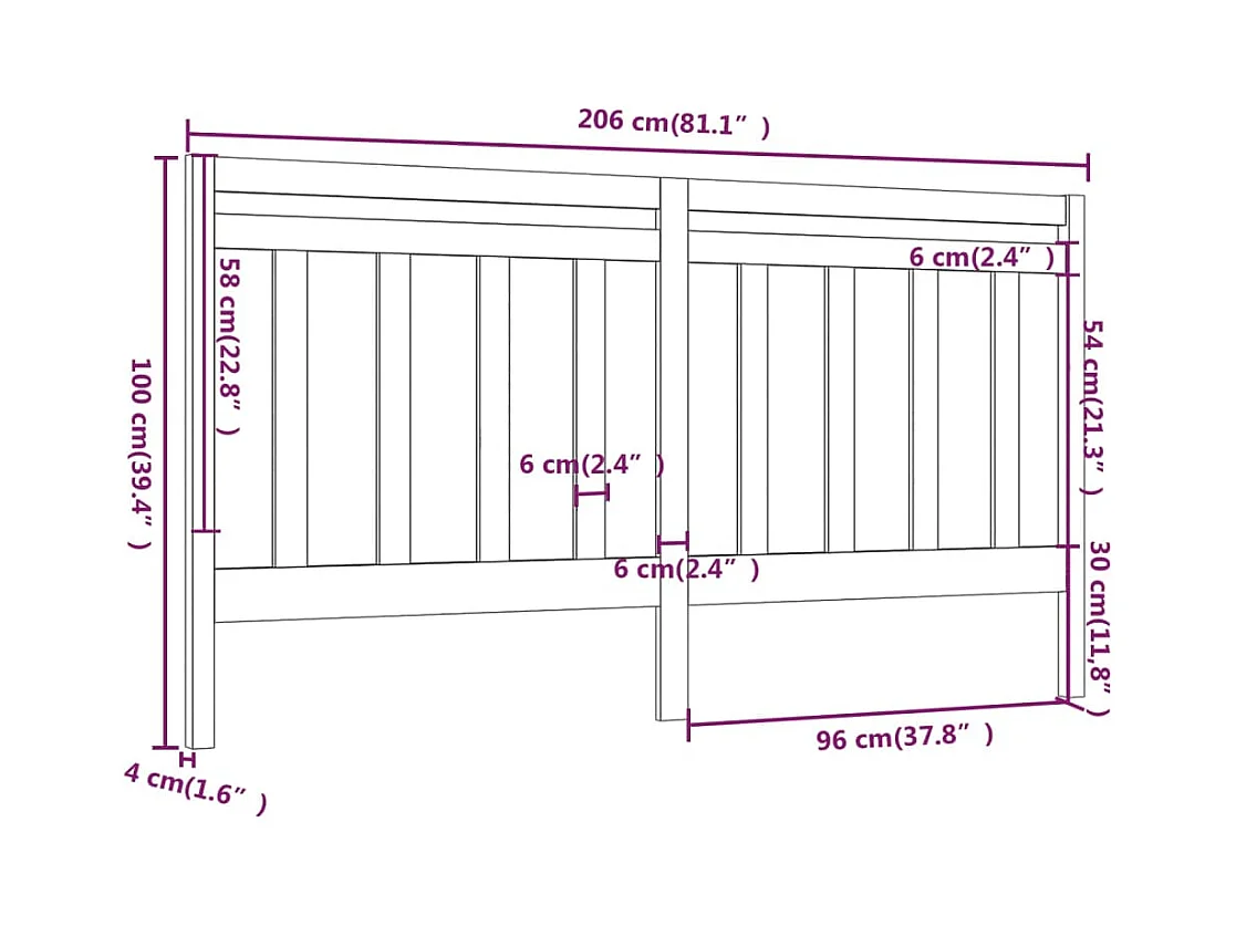 Tête de Lit | Panneau de tête pour lit Moderne 206x4x100 cm Bois massif de pin