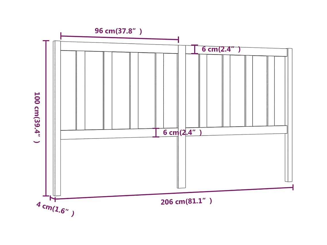 Tête de Lit | Panneau de tête pour lit Moderne 206x4x100 cm Bois massif de pin