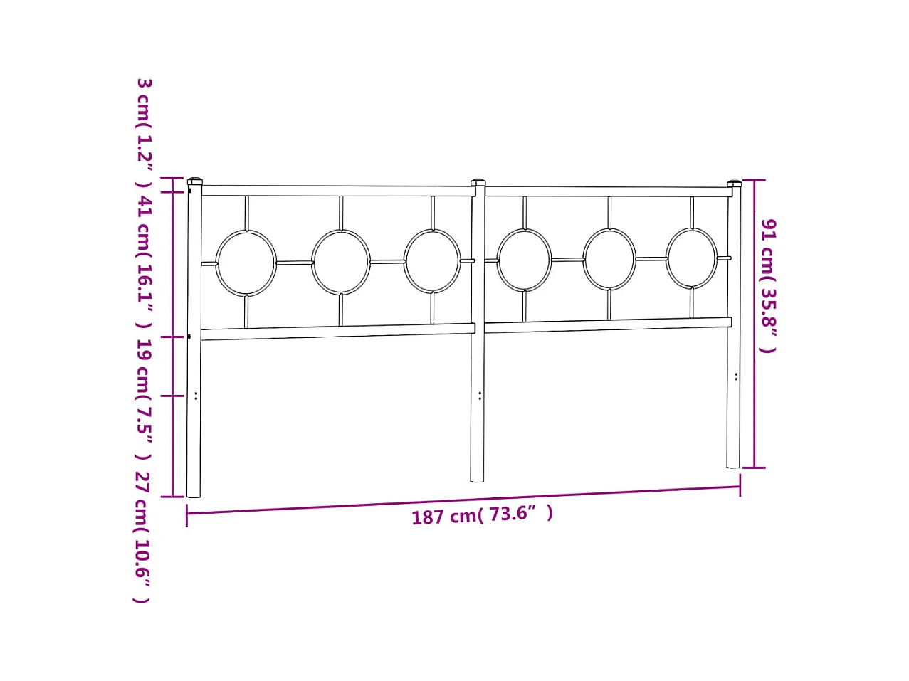 Tête de Lit | Panneau de tête pour lit Moderne métal noir 183 cm
