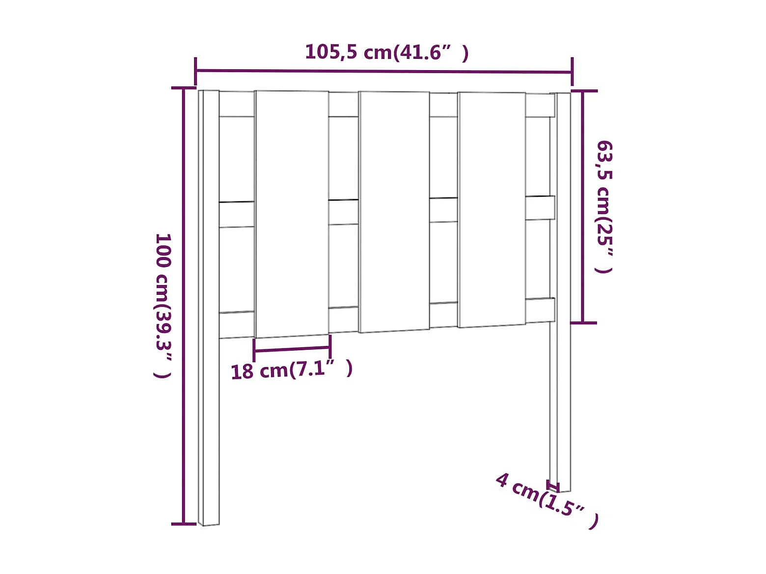 Tête de Lit | Panneau de tête pour lit Moderne Noir 105,5x4x100 cm Bois massif de pin