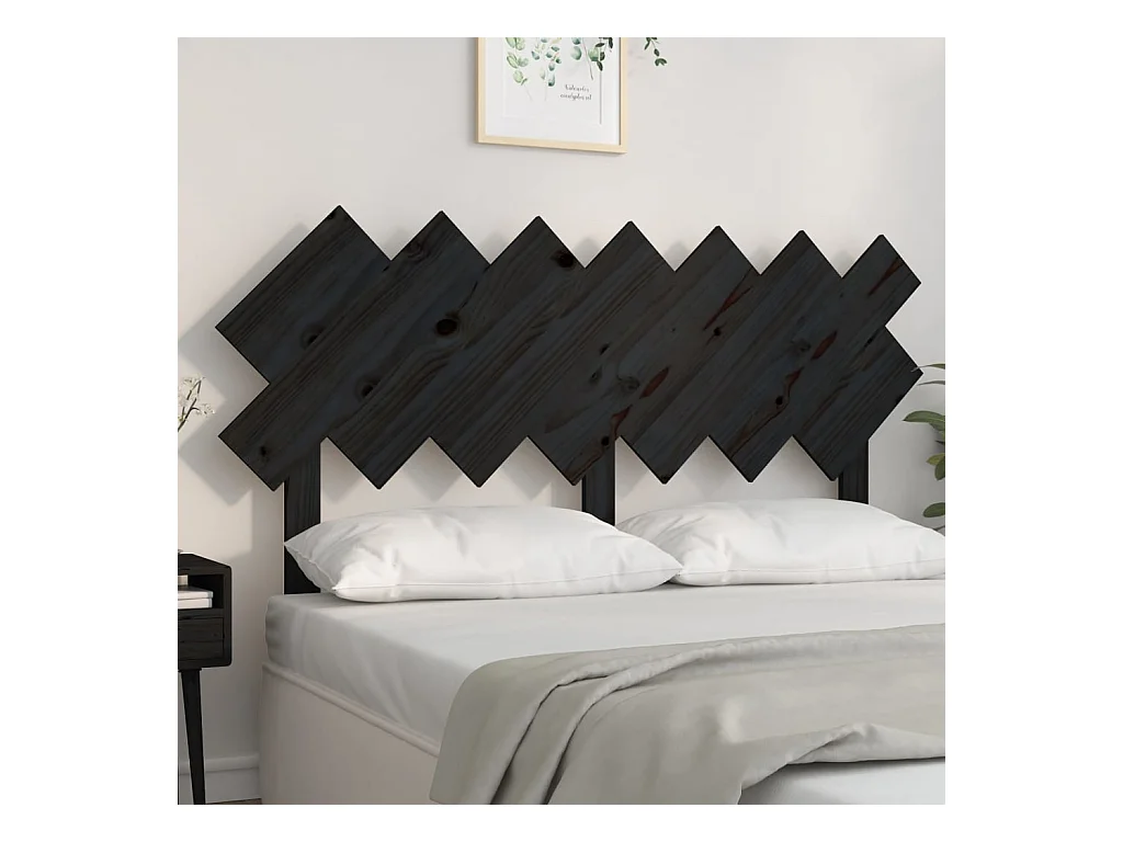 Tête de Lit | Panneau de tête pour lit Moderne Noir 141x3x80,5 cm Bois massif de pin