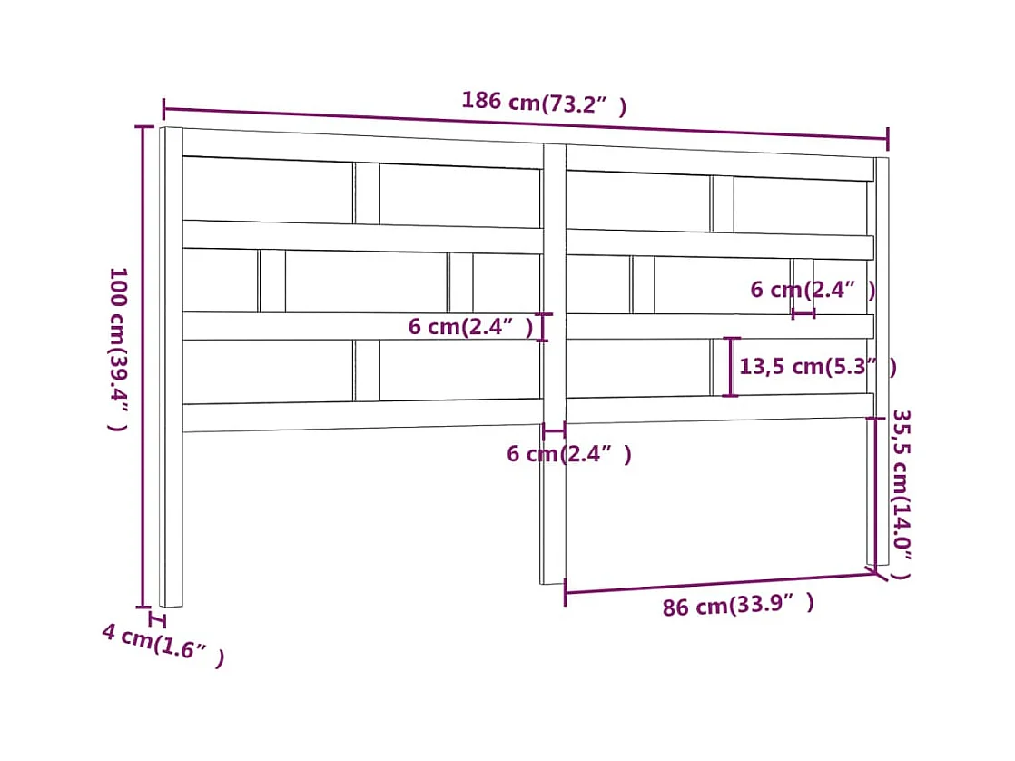 Tête de Lit | Panneau de tête pour lit Moderne Noir 186x4x100 cm Bois massif de pin