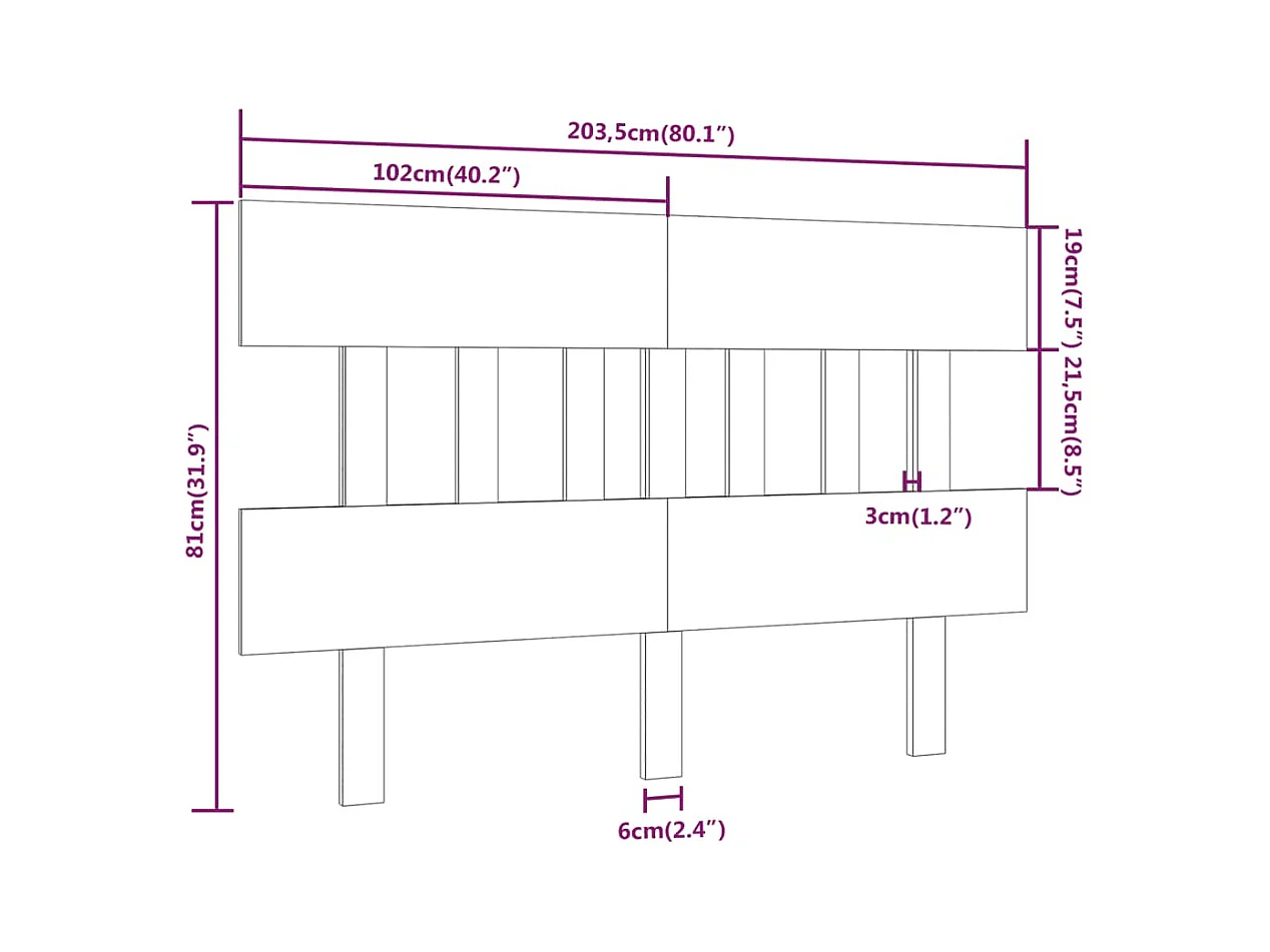 Tête de Lit | Panneau de tête pour lit Moderne Noir 203,5x3x81 cm Bois massif de pin