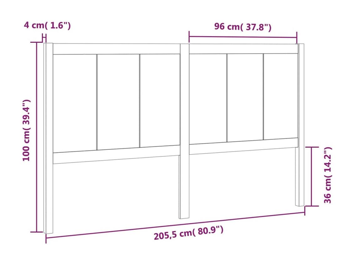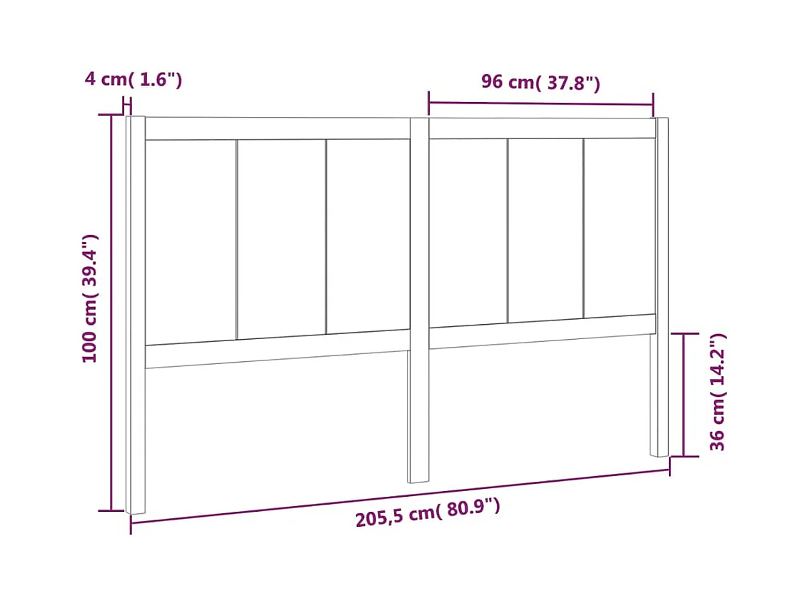 Tête de Lit | Panneau de tête pour lit Moderne Noir 205,5x4x100 cm Bois massif de pin