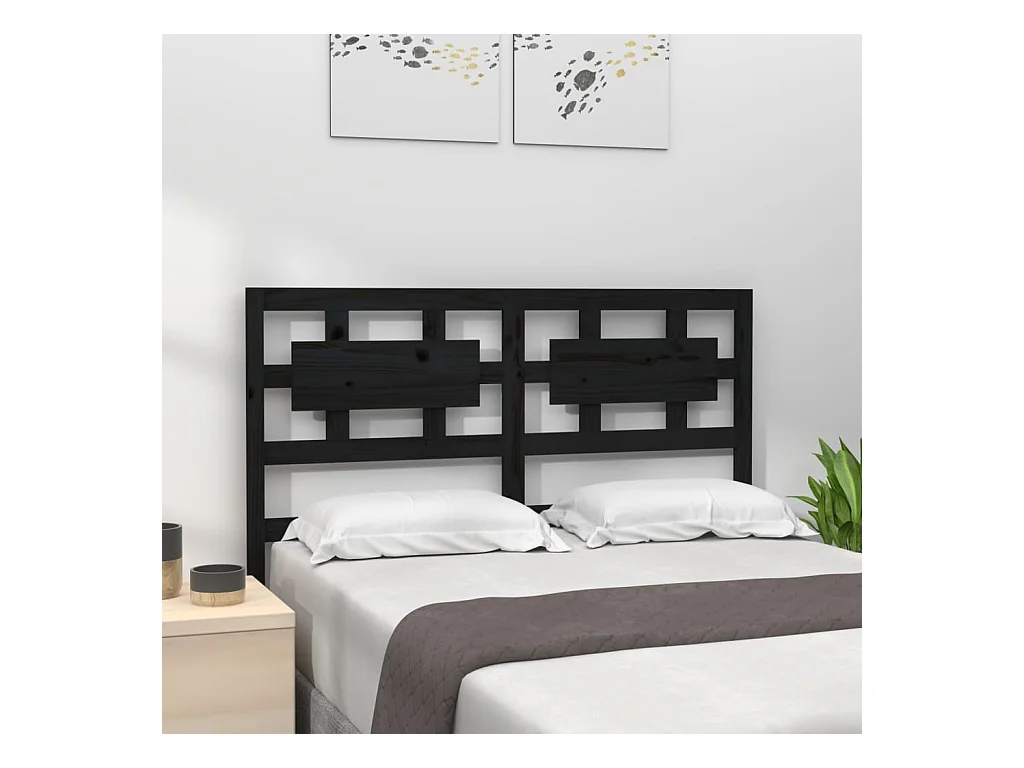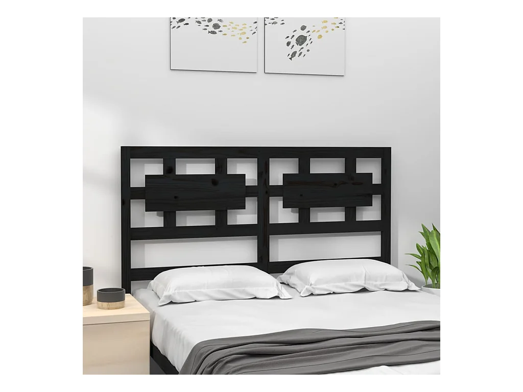 Tête de Lit | Panneau de tête pour lit Moderne Noir 166x4x100 cm Bois massif de pin