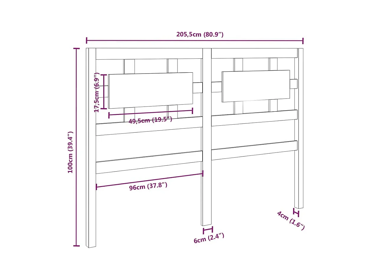Tête de Lit | Panneau de tête pour lit Moderne Noir 205,5x4x100 cm Bois massif de pin