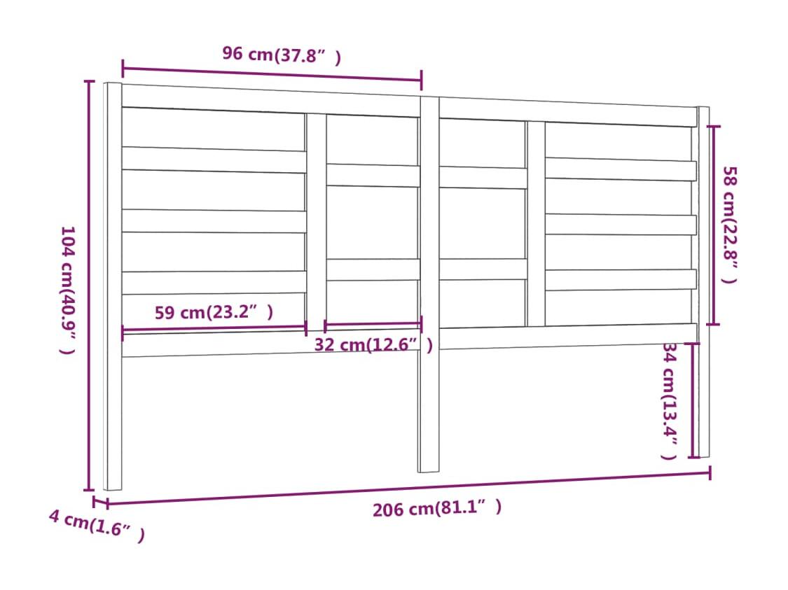 Tête de Lit | Panneau de tête pour lit Moderne Noir 206x4x104 cm Bois massif de pin
