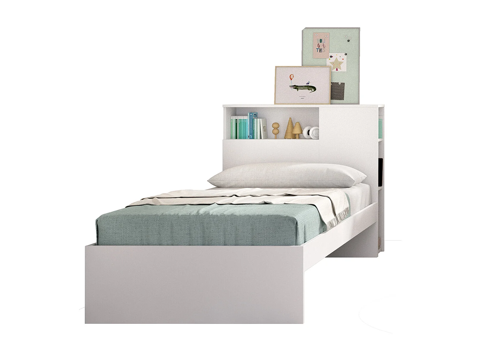 Tête de lit + structure de lit pour enfant en bois coloris blanc - Longueur 218 x Profondeur 97,50 x Hauteur 95 cm