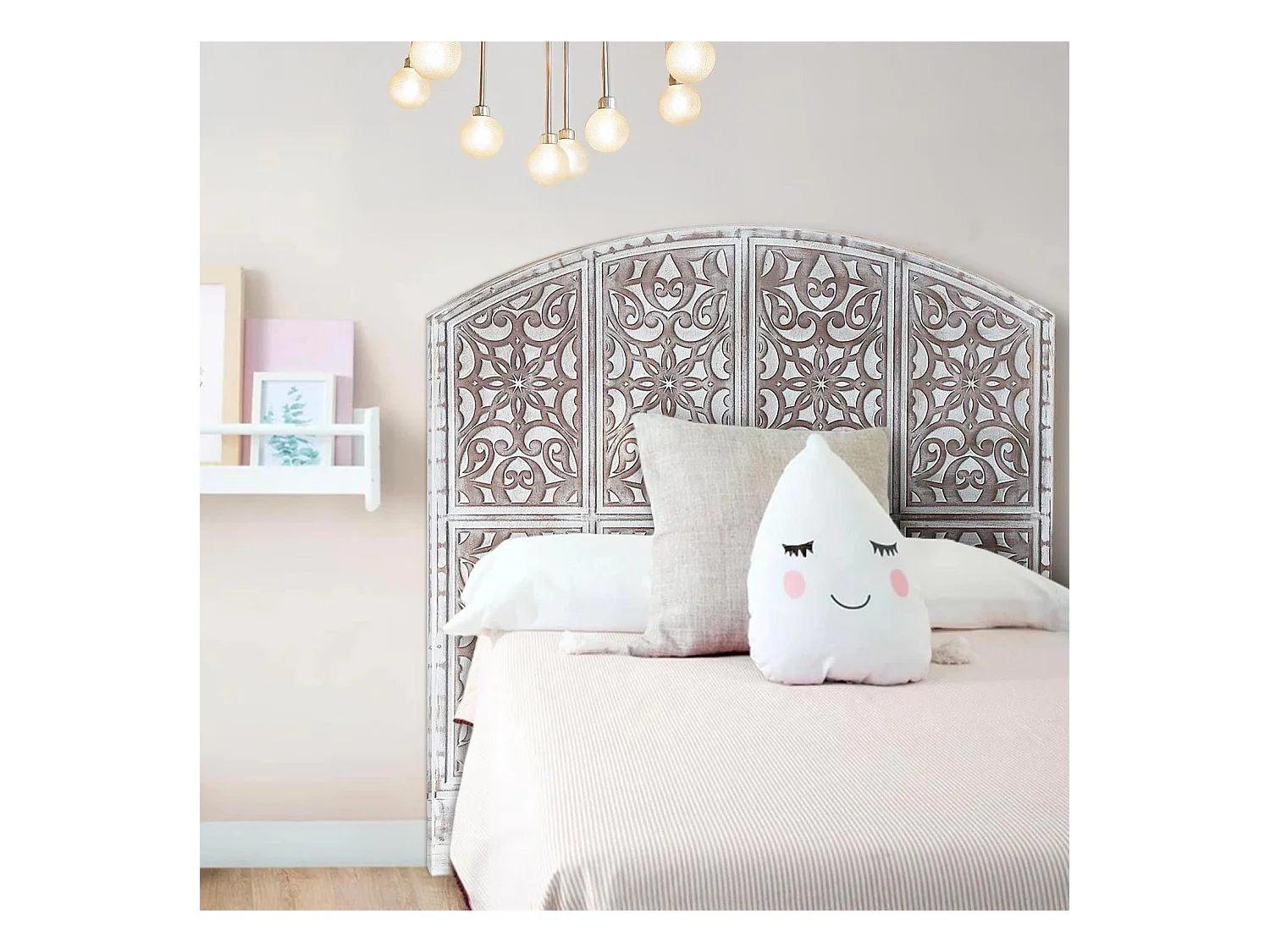 Tête de lit style oriental bois sculpté Linium 120cm Blanc patiné