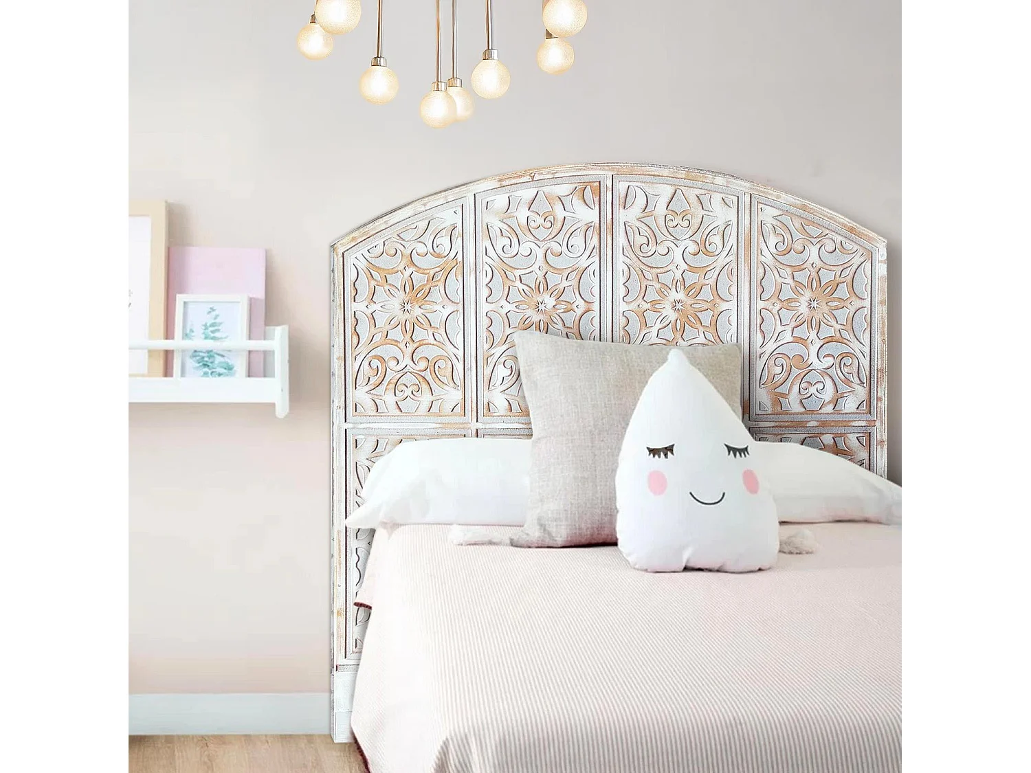 Tête de lit style oriental bois sculpté Linium 120cm Gris patiné