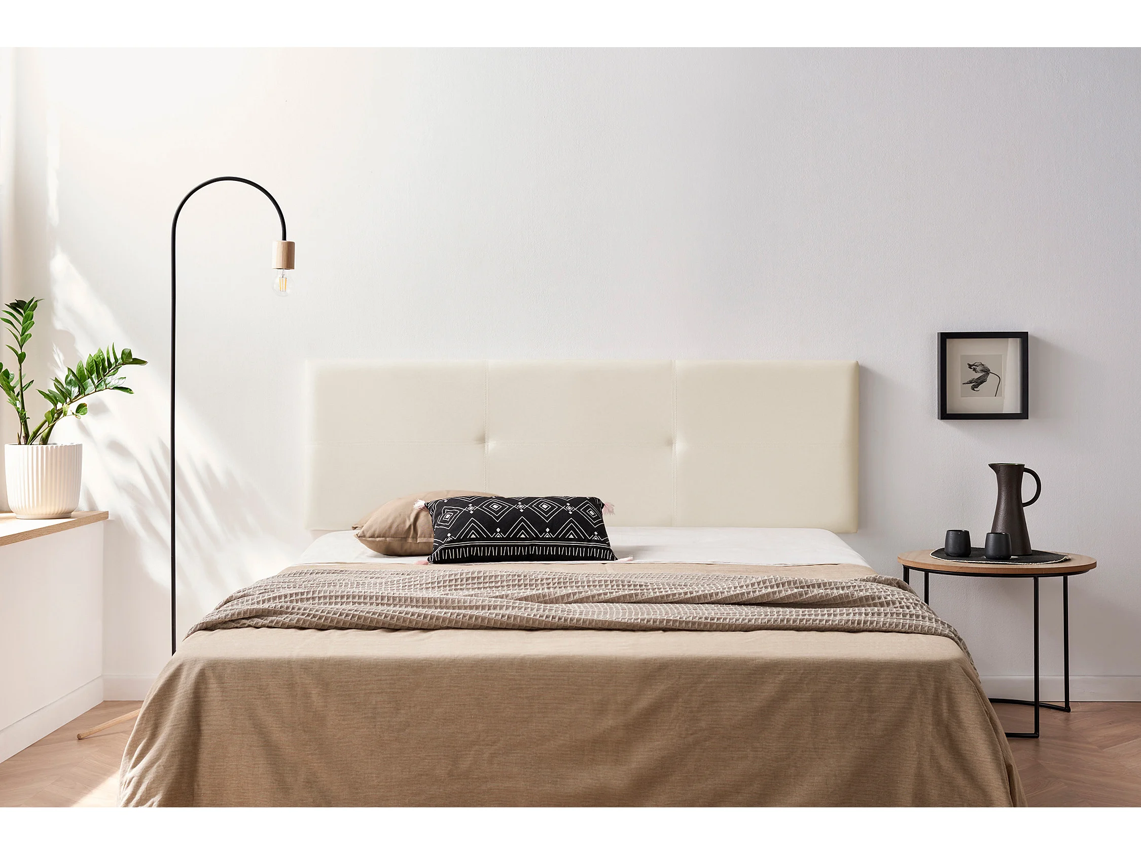 Tête de Lit Tapisée ALMA Simili cuir 145x50x5 cm - Blanc Cassé - Moonia