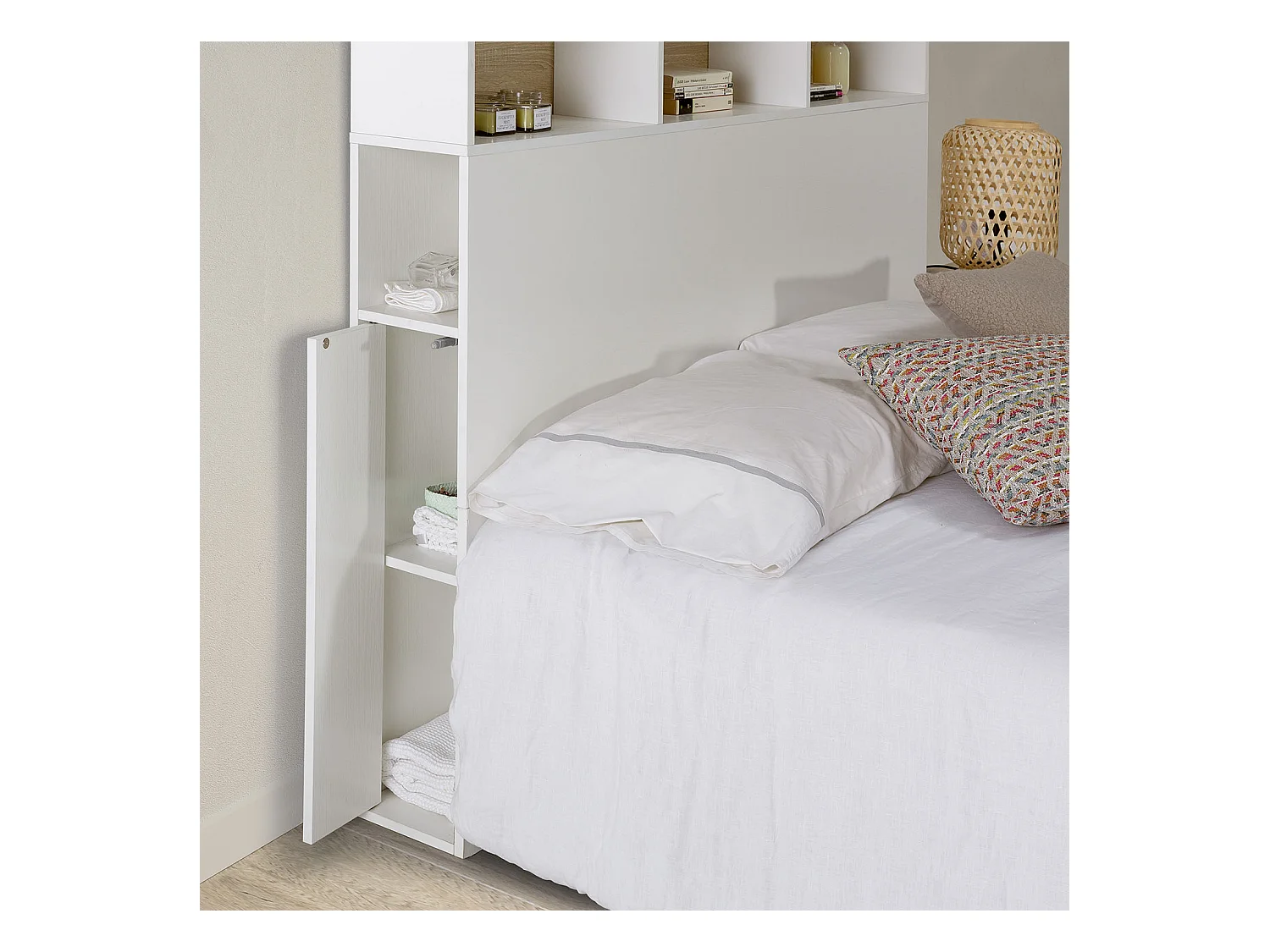 Tête de lit Zeus 145 cm blanc, 2 portes 9 trous