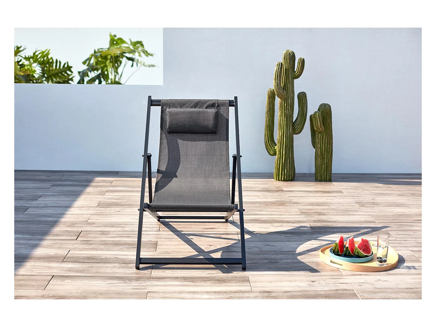 Set bain de soleil et table d'appoint BARBADOS en textilène gris - aluminium gris anthracite - HAPPY GARDEN