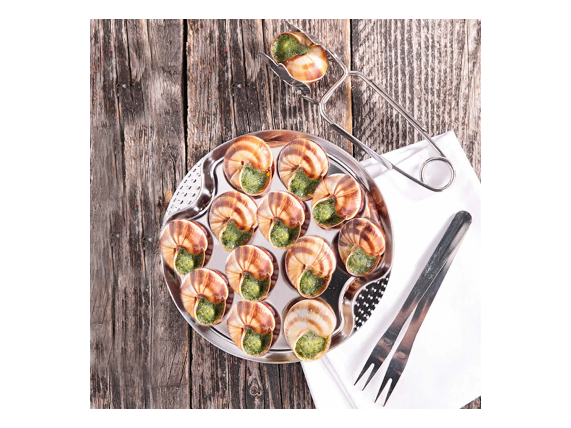 The Kitchenette - Lot De 6 Plats A Escargots 12 Trous En Inox