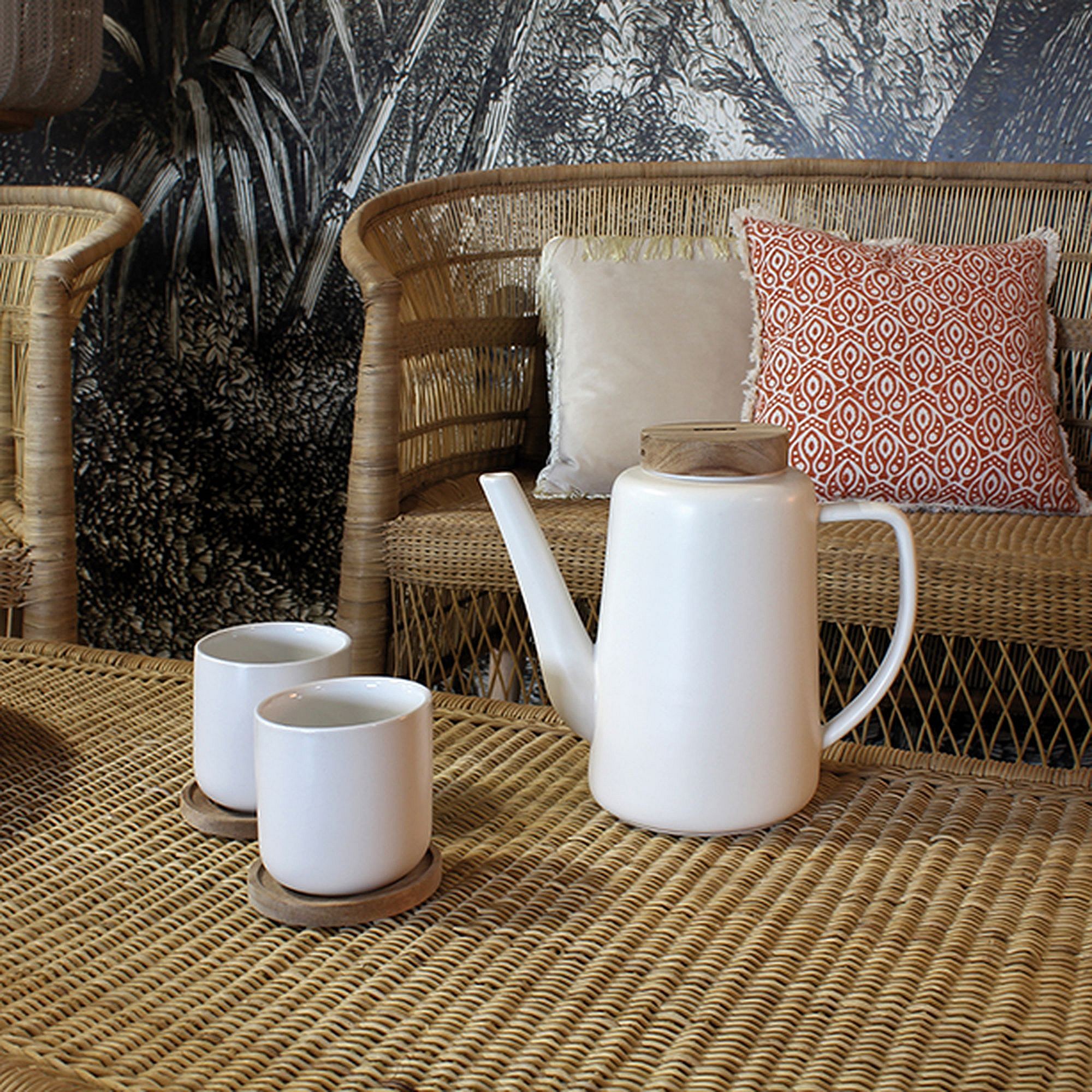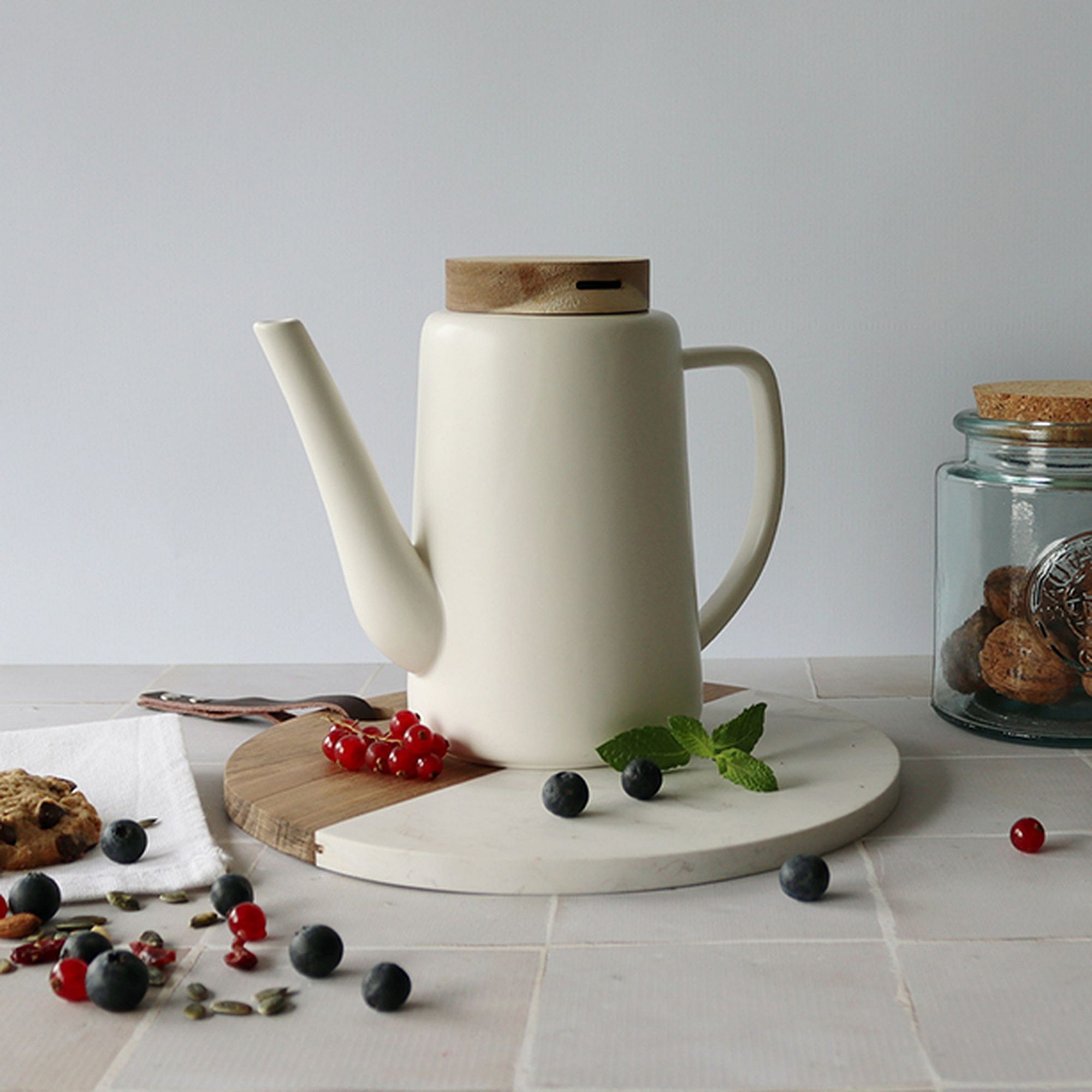 Ogo Living - Theiere Enzo 1200ml En Porcelaine Blanche Et Couvercle Acacia