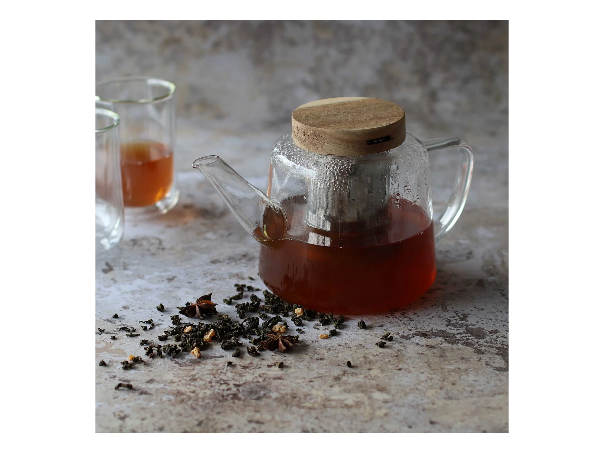 Ogo Living - Theiere Gustave 1000ml En Verre Borosilicate Et Couvercle Bois