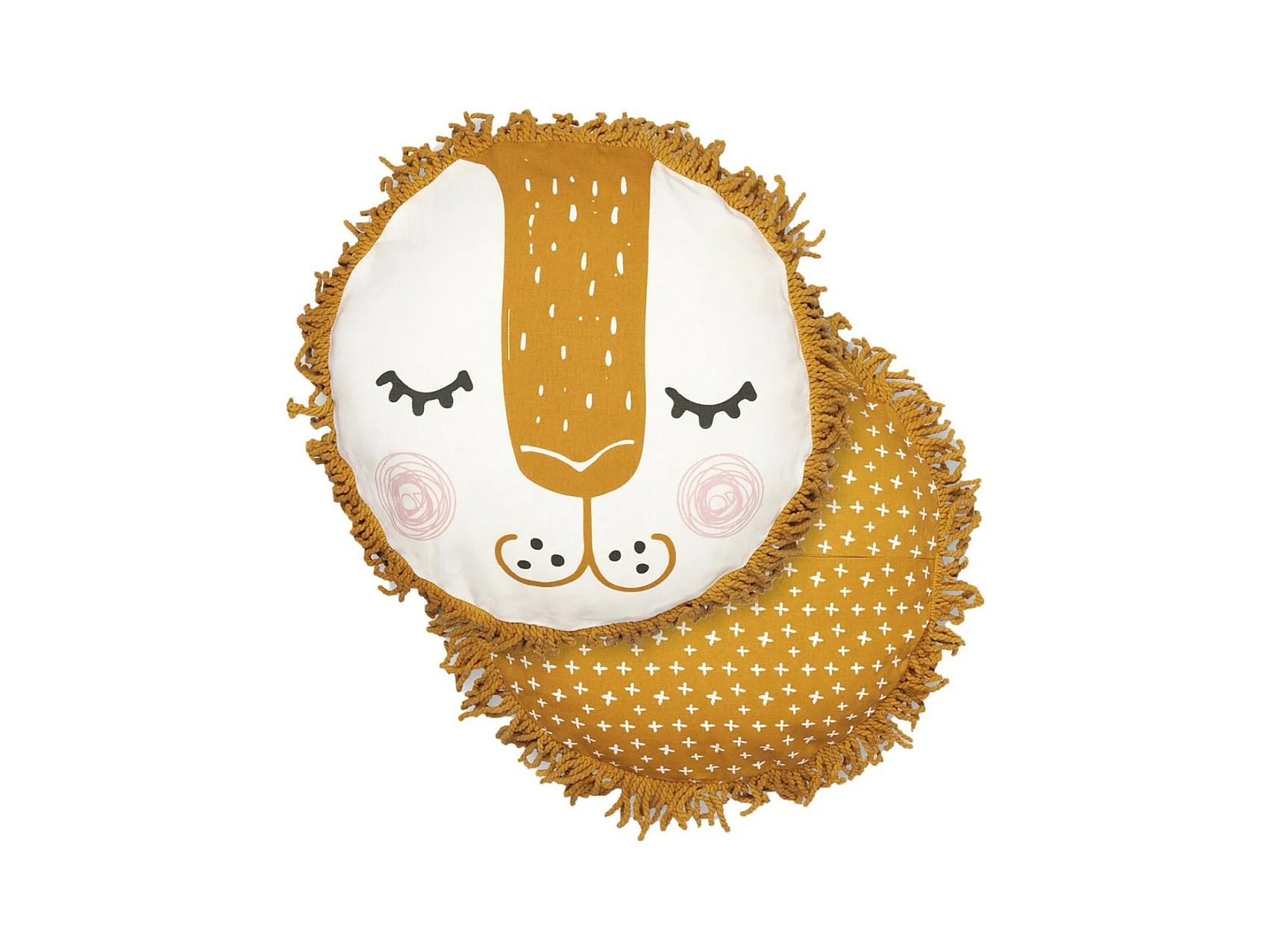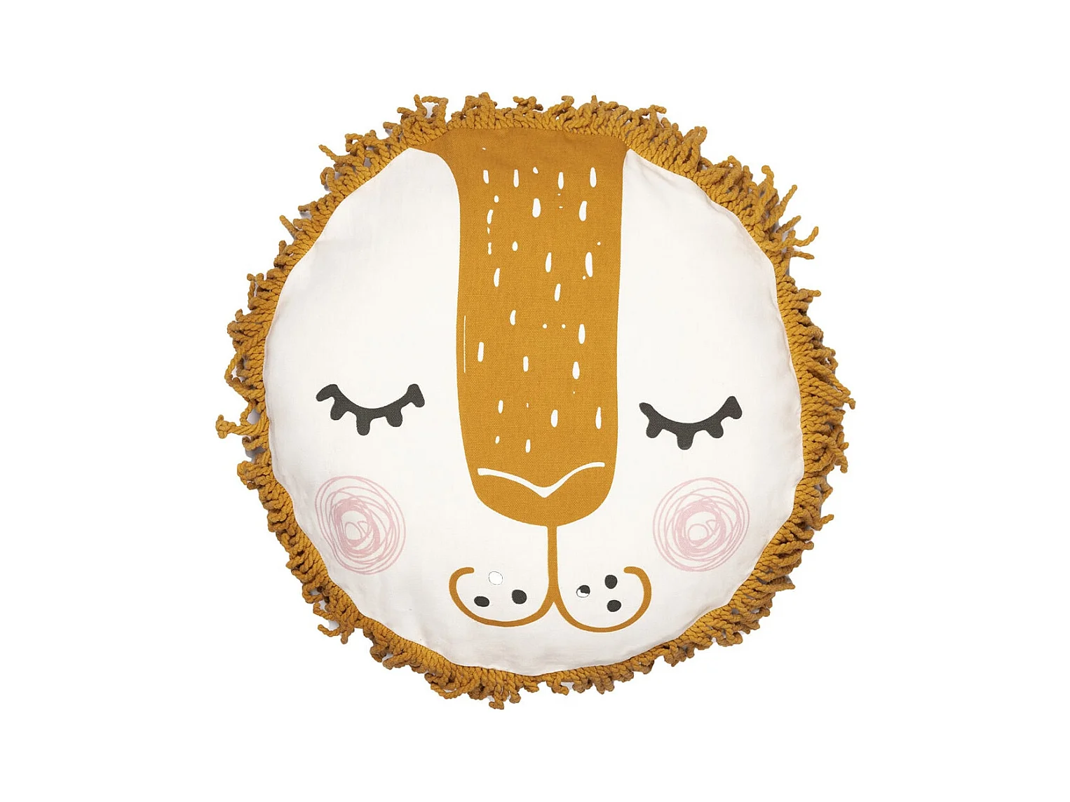 Coussin décoratif Lion avec Franges D 38 cm déco enfant
