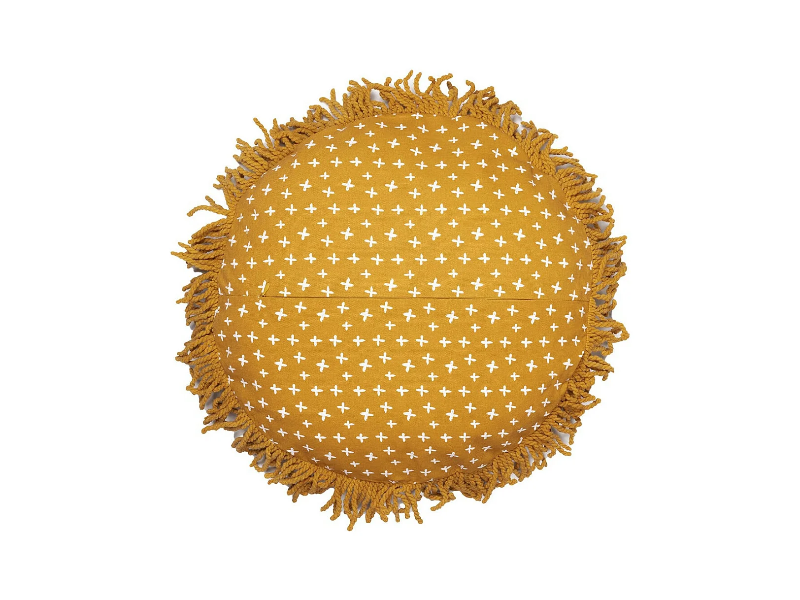 THEO - Coussin Déhoussable Ø40cm Coton Motif Lion avec Franges de Macramé