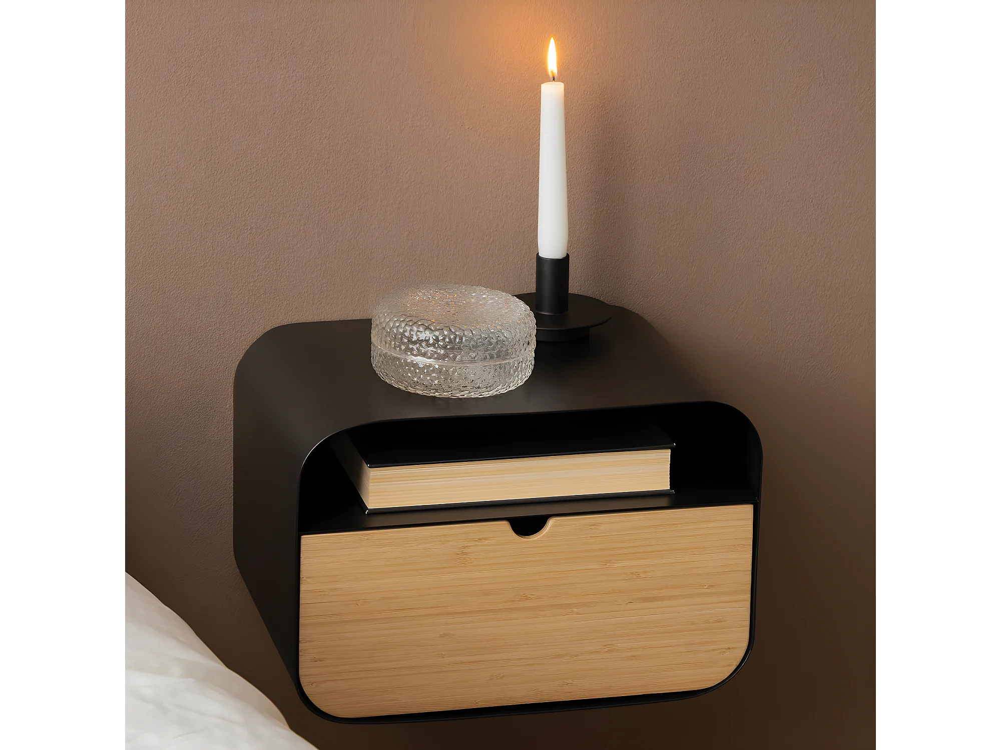 Chevet suspendu rectangulaire métal noir et bambou 1 tiroir 1 niche - JANE
