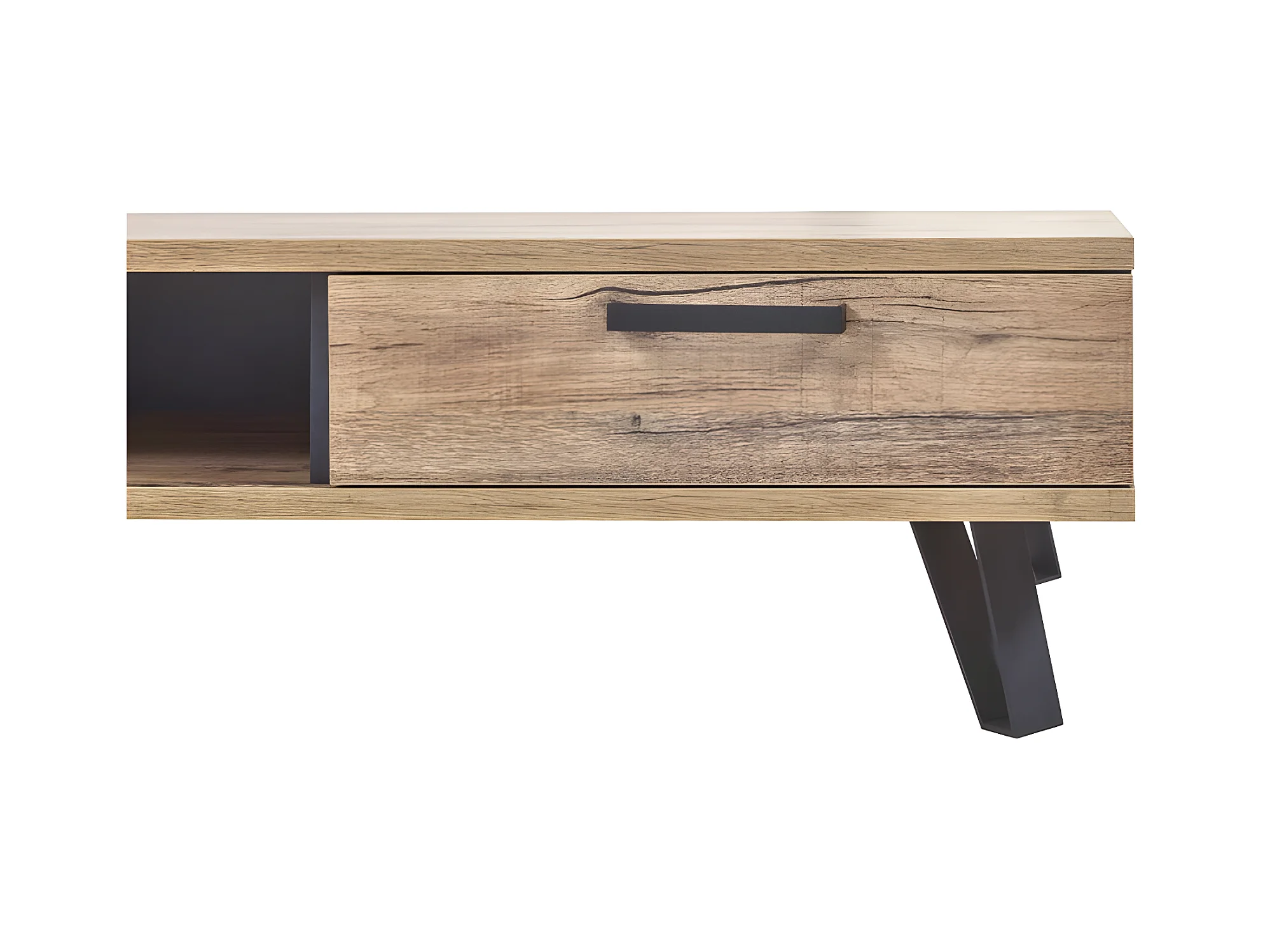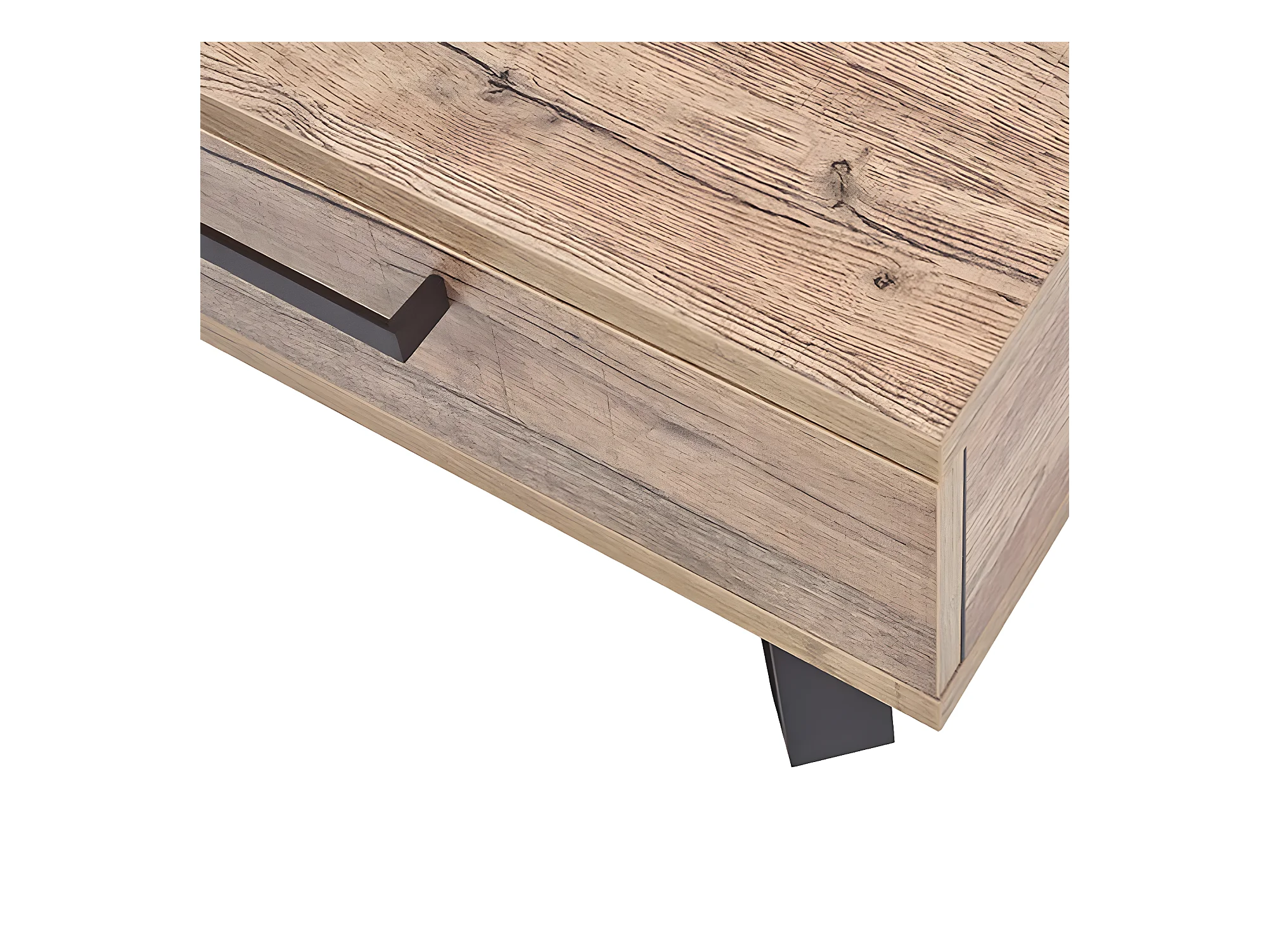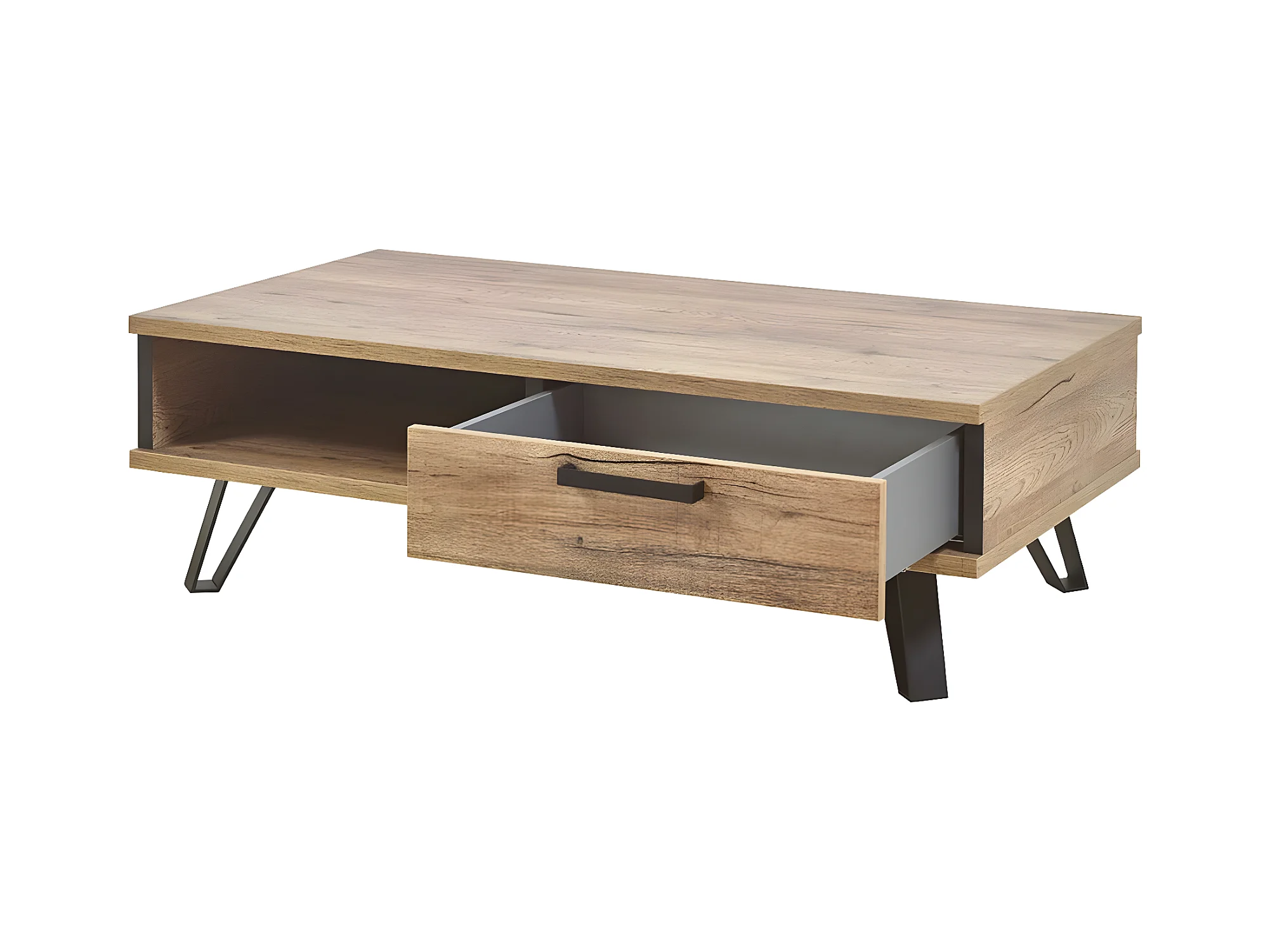 THIBAULT - Table Basse 1 Tiroir 1 Niche Effet Bois et Pieds Métal