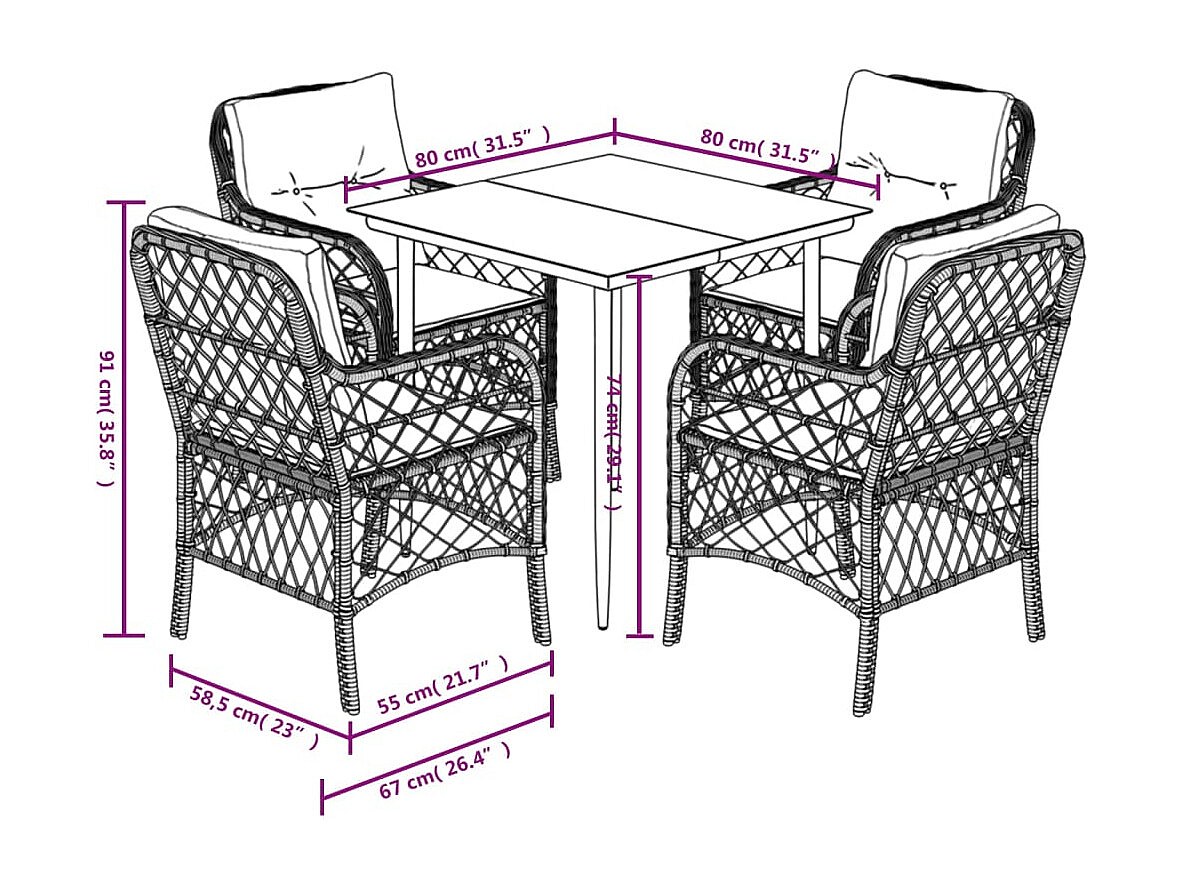 Thibodaux Ensemble à manger de jardin 5 pcs coussins gris résine tressée