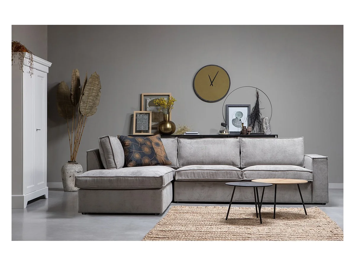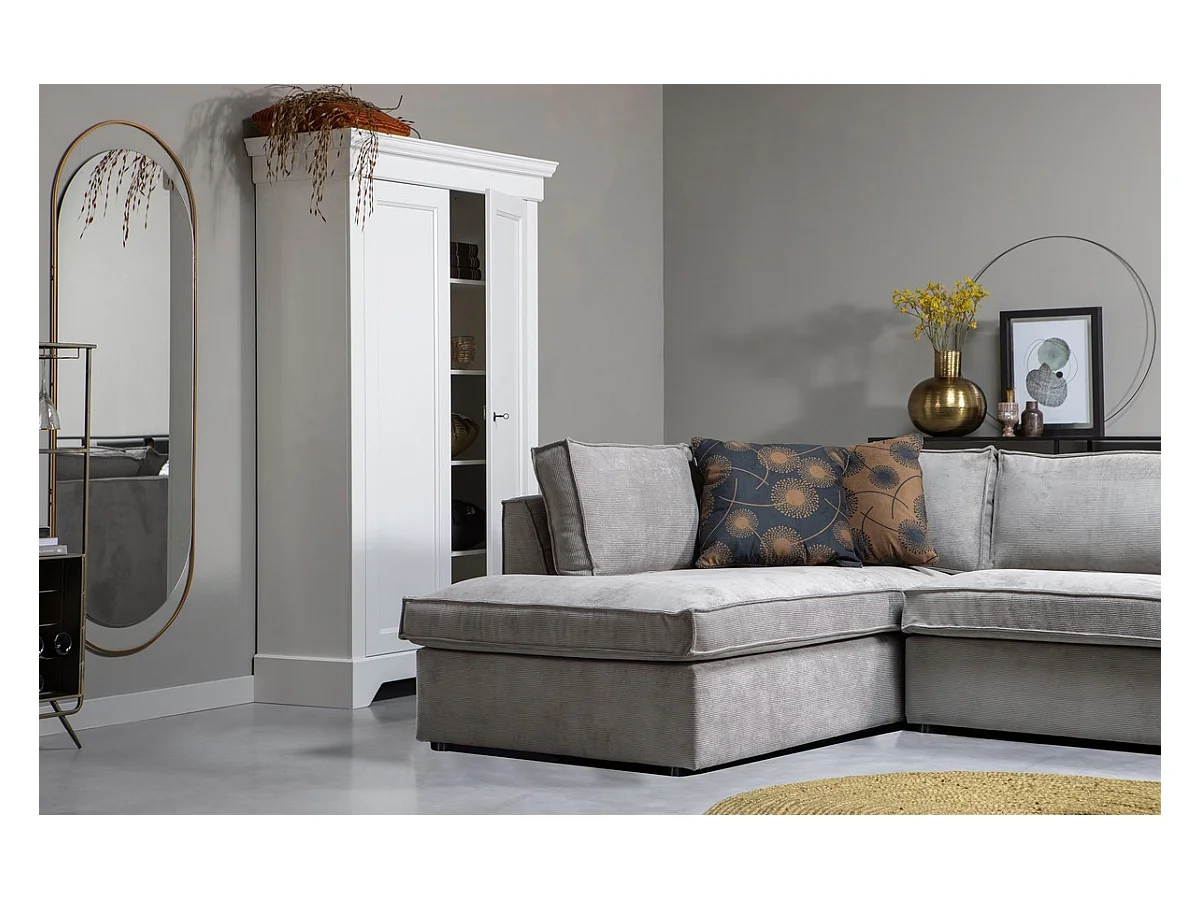 THOMAS - Canapé d'angle gauche 5 places en velours côtelé gris vert