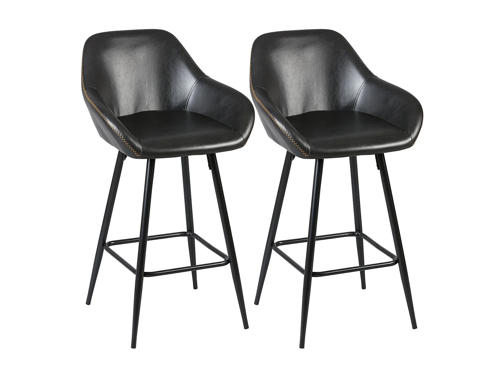 THOME - Lot de 2 Tabourets de Bar Simili Noir