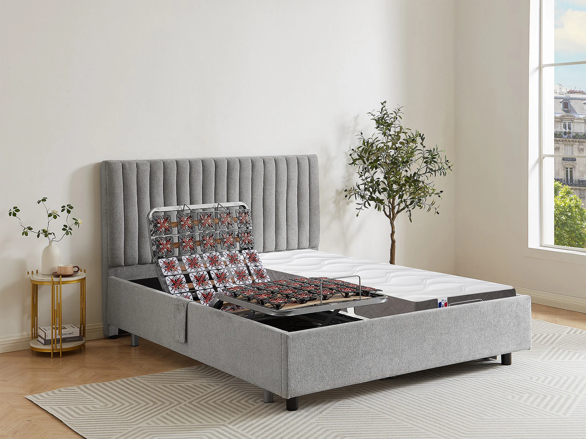 Lit électrique de relaxation déco tout plots + matelas 100% latex 3 zones - 2 x 90 x 200 cm - Tissu - Gris - TIARI de YSMÉE