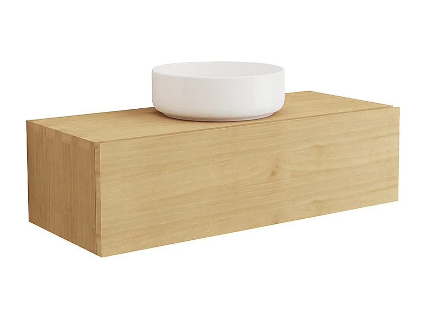 Meuble de salle de bain suspendu en bois de mindi avec vasque à poser ronde en céramique - 95 cm - TIDORE