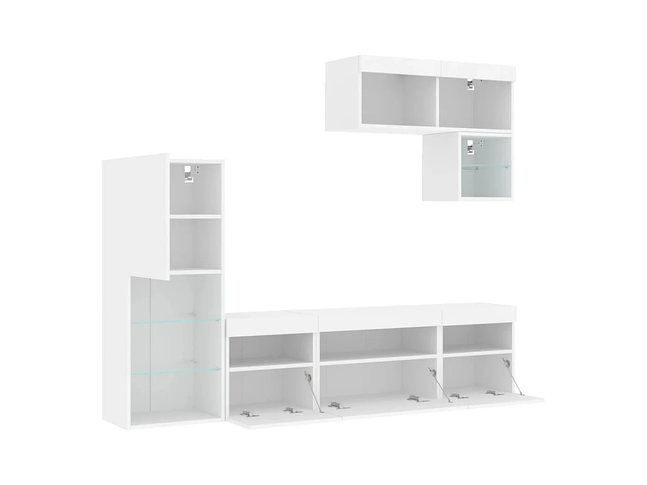 Tilda Unités murales TV avec LED 6 pcs blanc bois d'ingénierie