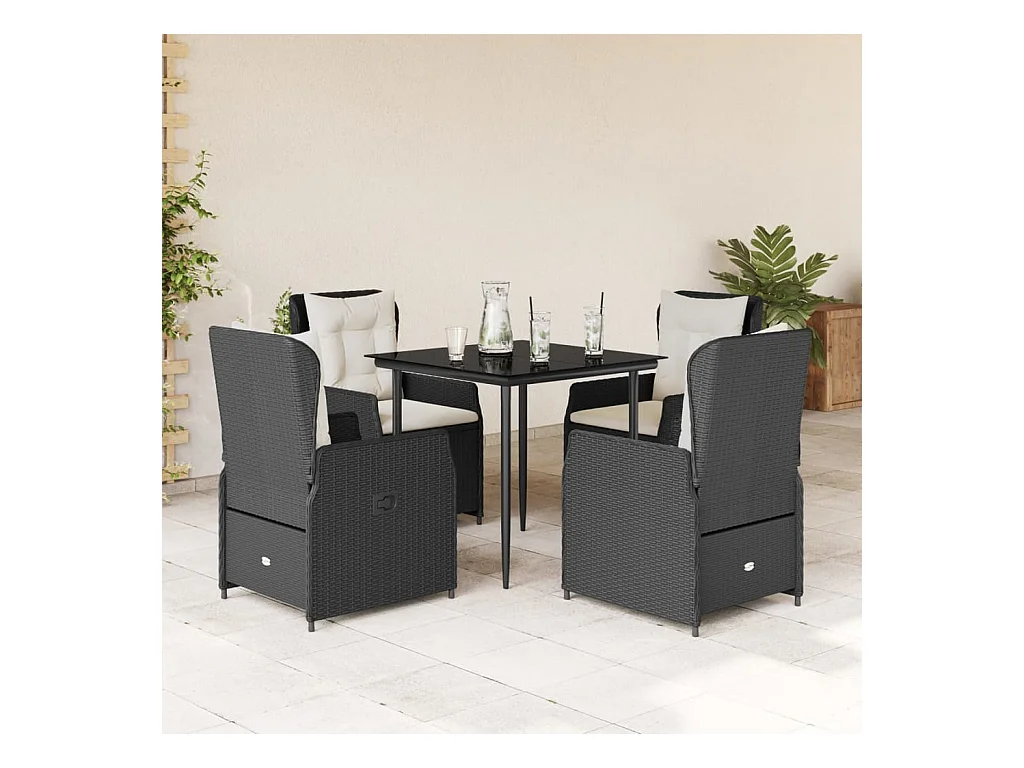 Tilly Ensemble à manger de jardin coussins 5pcs Noir Résine tressée