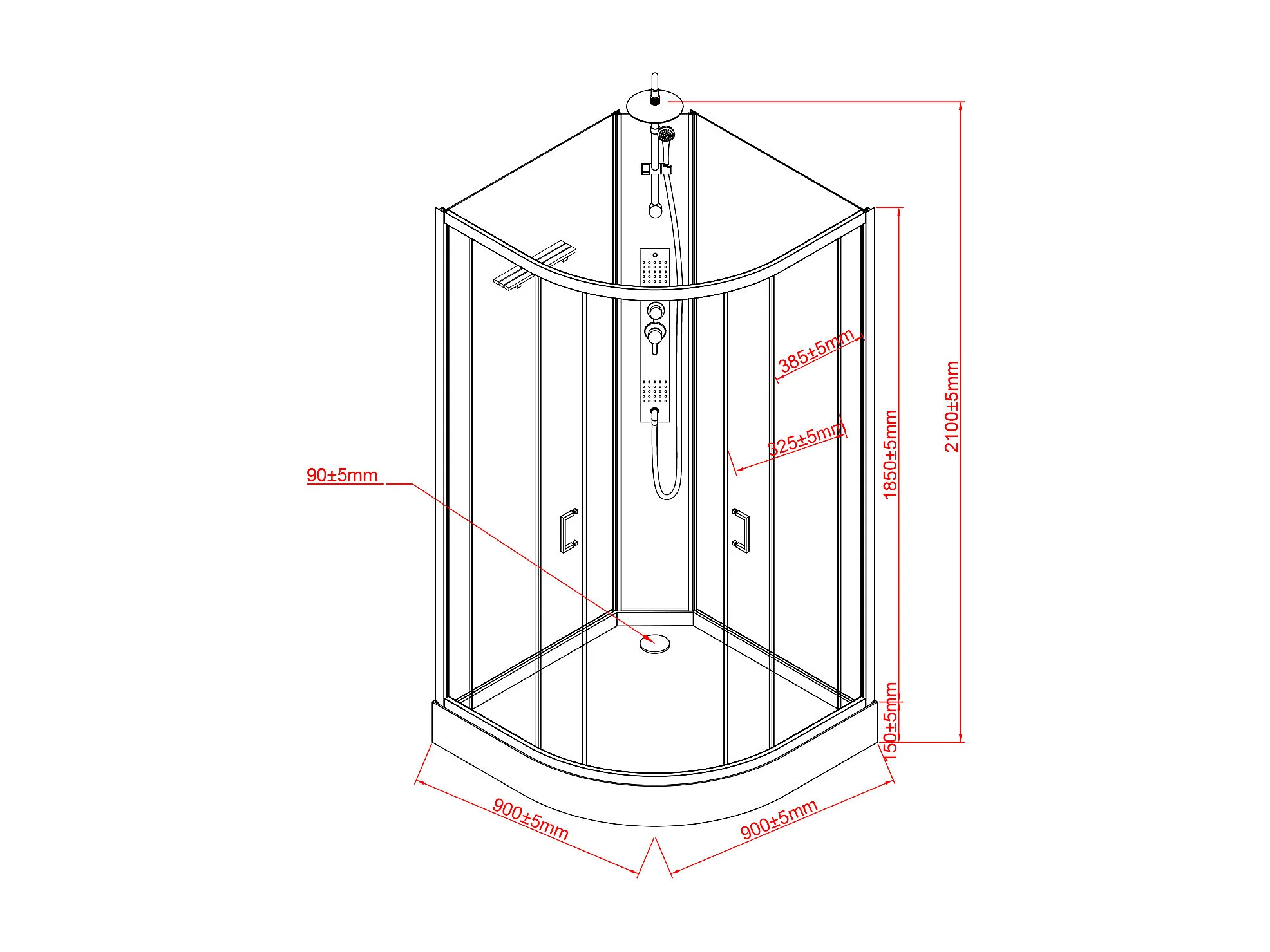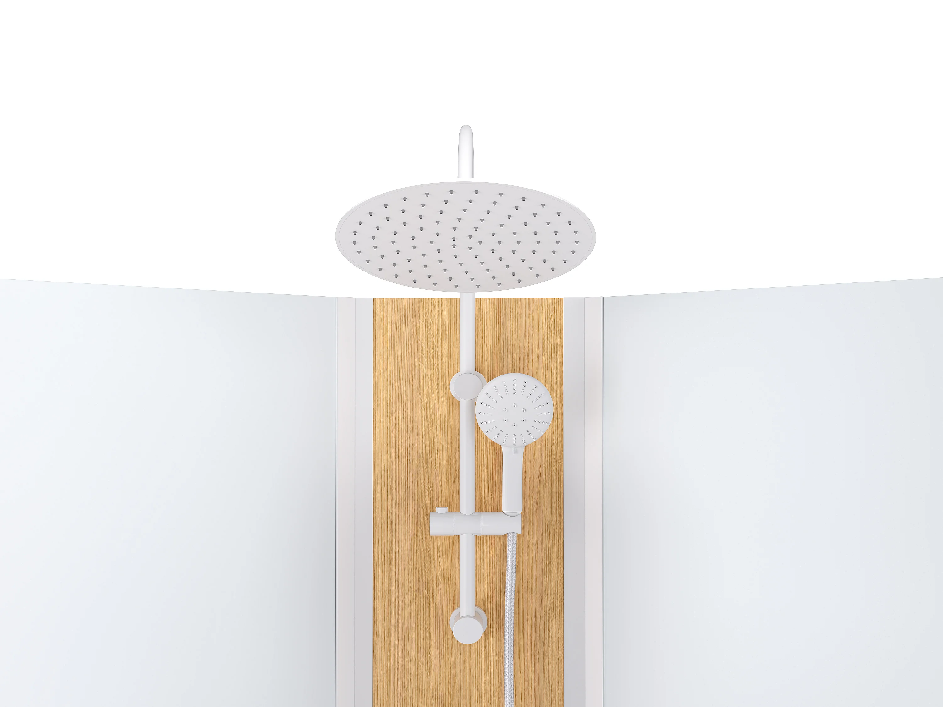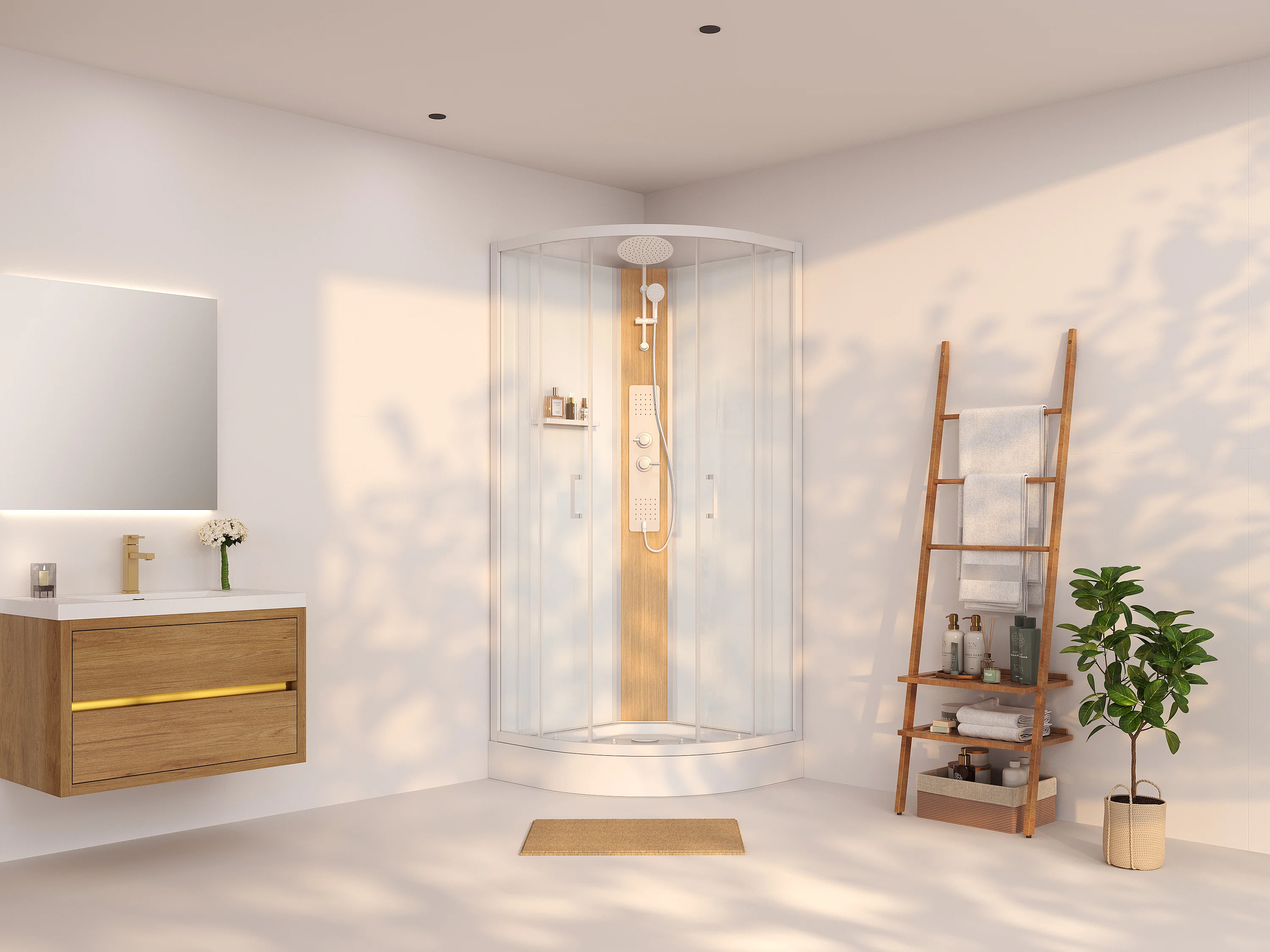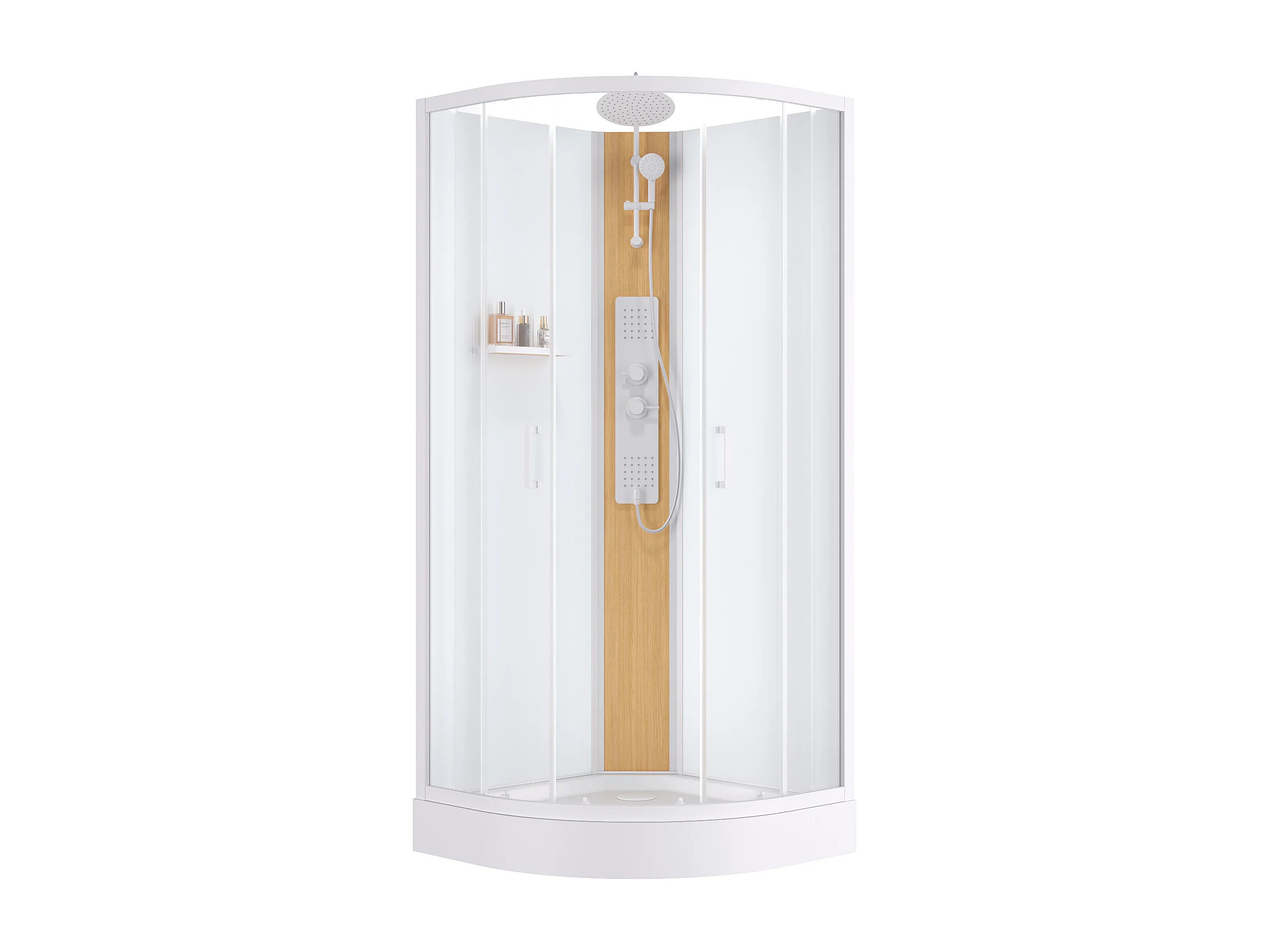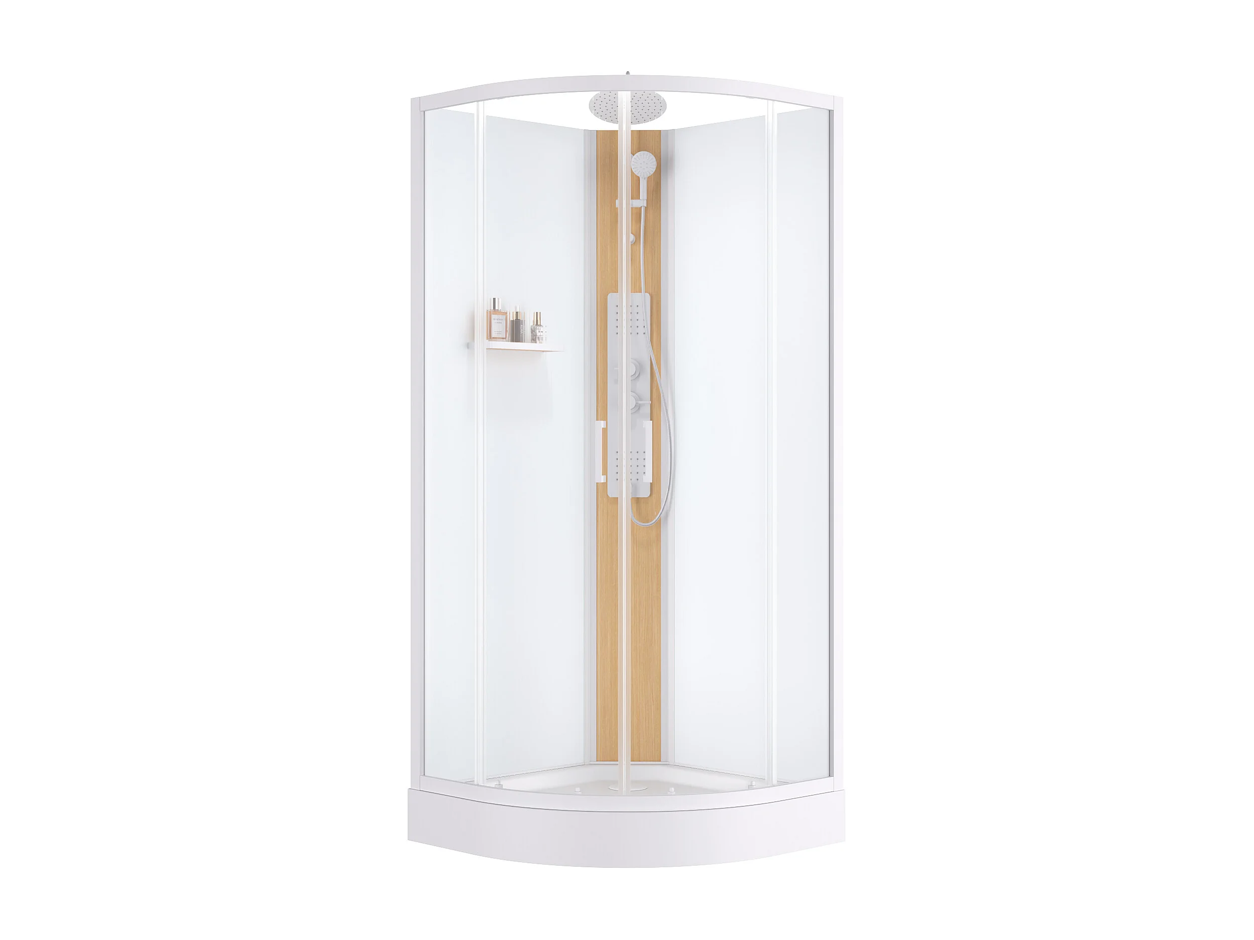 Cabine de douche hydromassante en quart de cercle avec panneau en bambou composite - Blanc mat - L90 x l90 x H225 cm - TILOMA