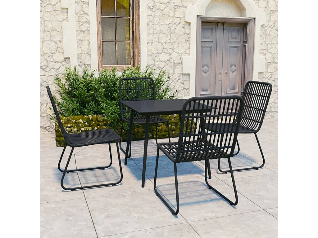 Timos Ensemble à manger d'extérieur 5 pcs résine tressée et verre