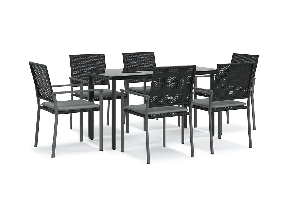 Timothy Scott Ensemble à manger de jardin 7 pcs coussins résine tressée acier
