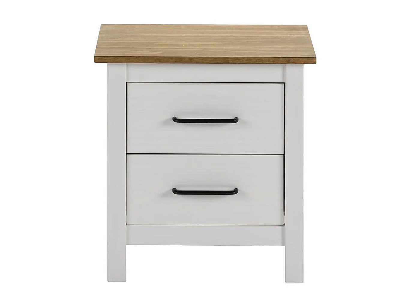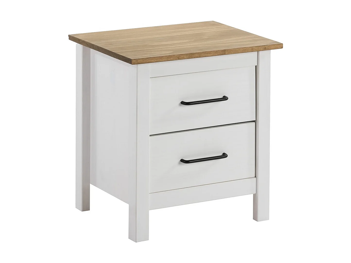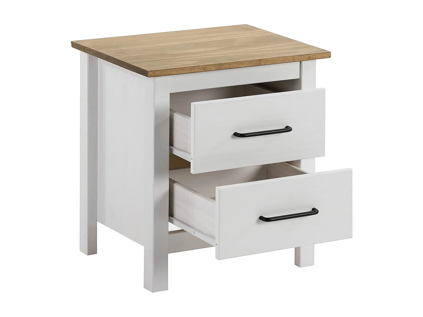 DAVA - Chevet 2 Tiroirs en Pin Massif Blanc